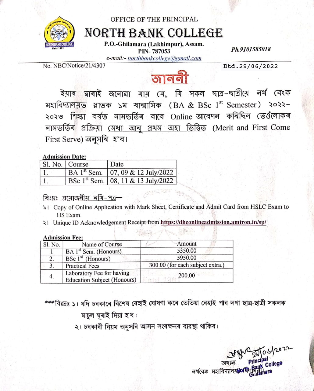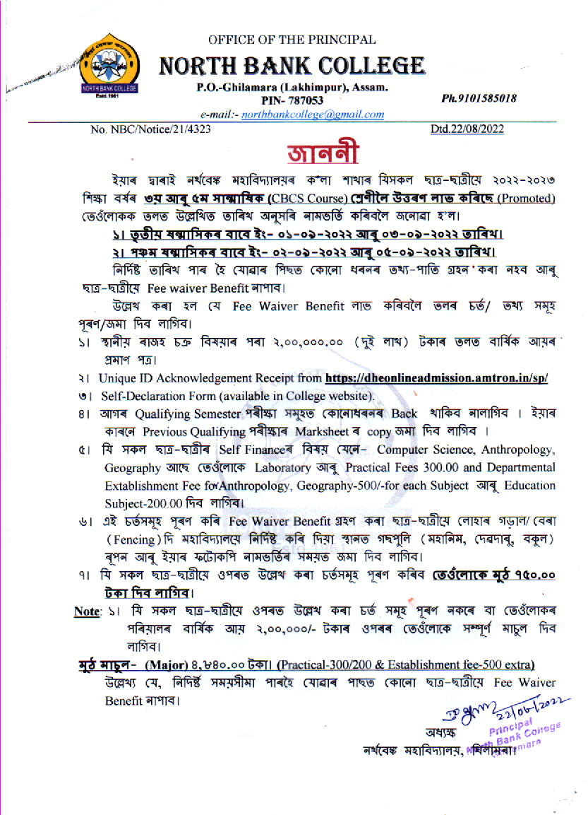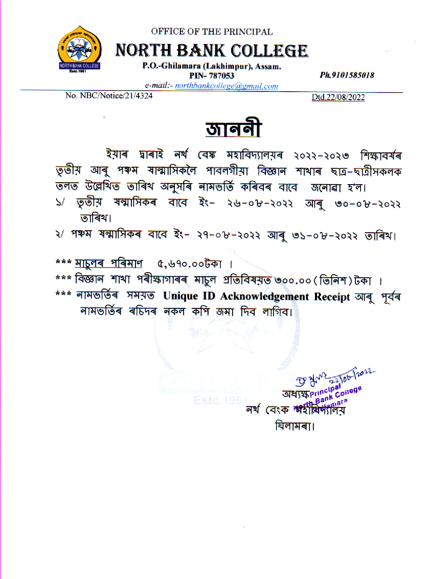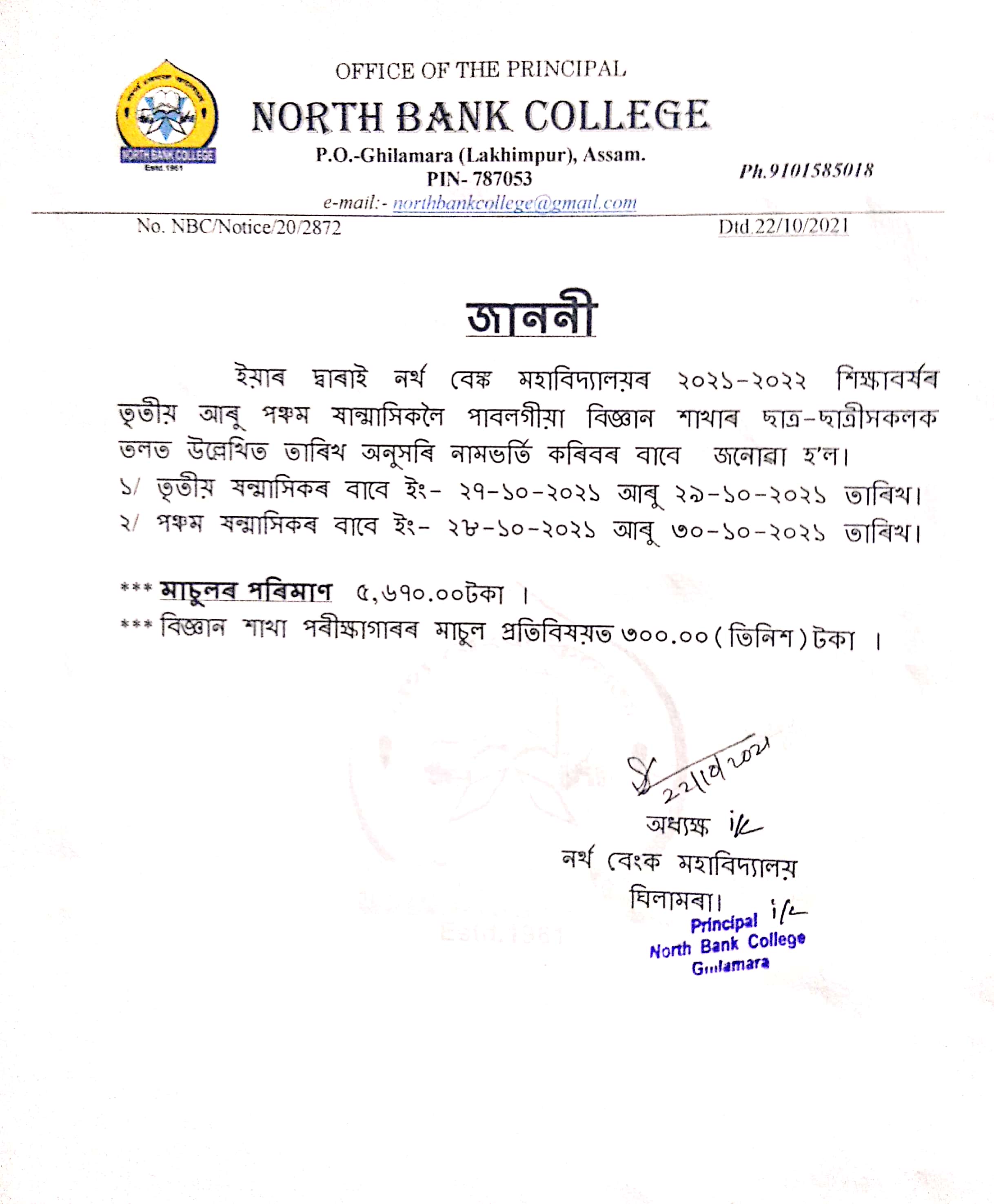 Admission Notice for 3rd and 5th Sem BA & BSc