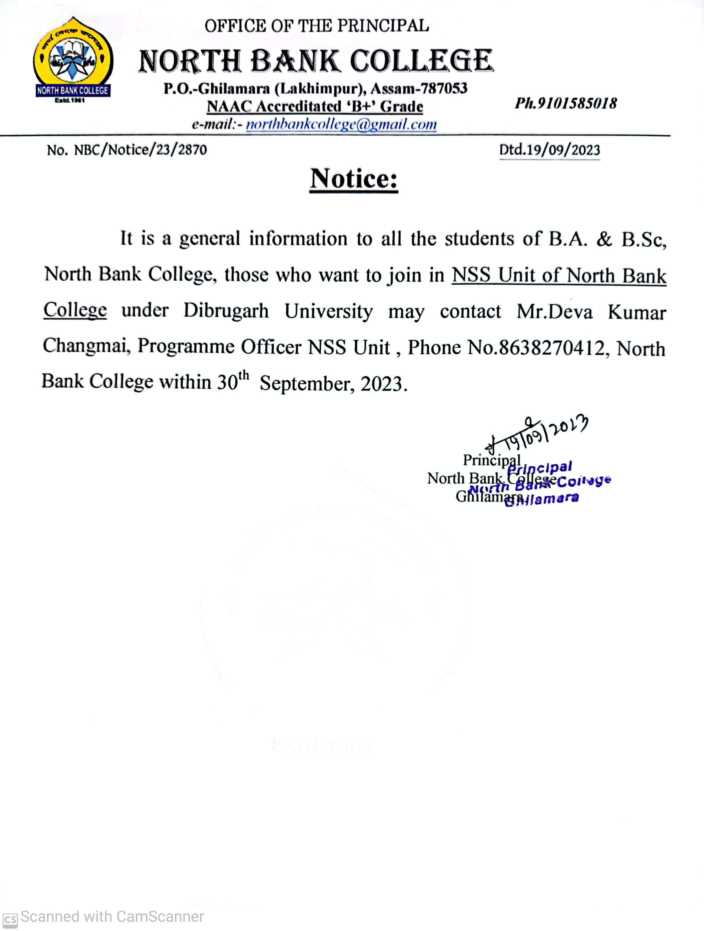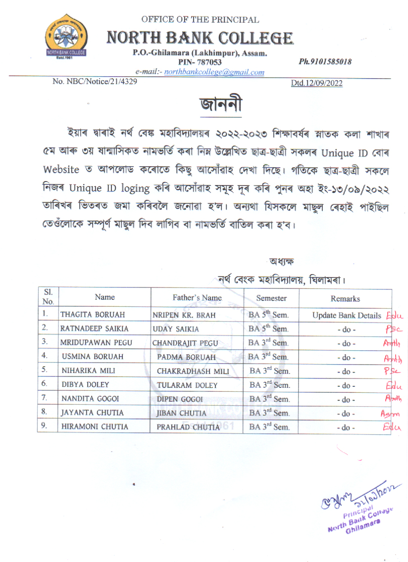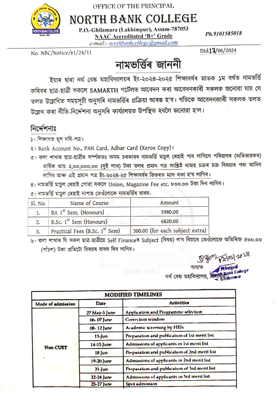 Admission Notice for 3rd and 5th Sem BA & BSc