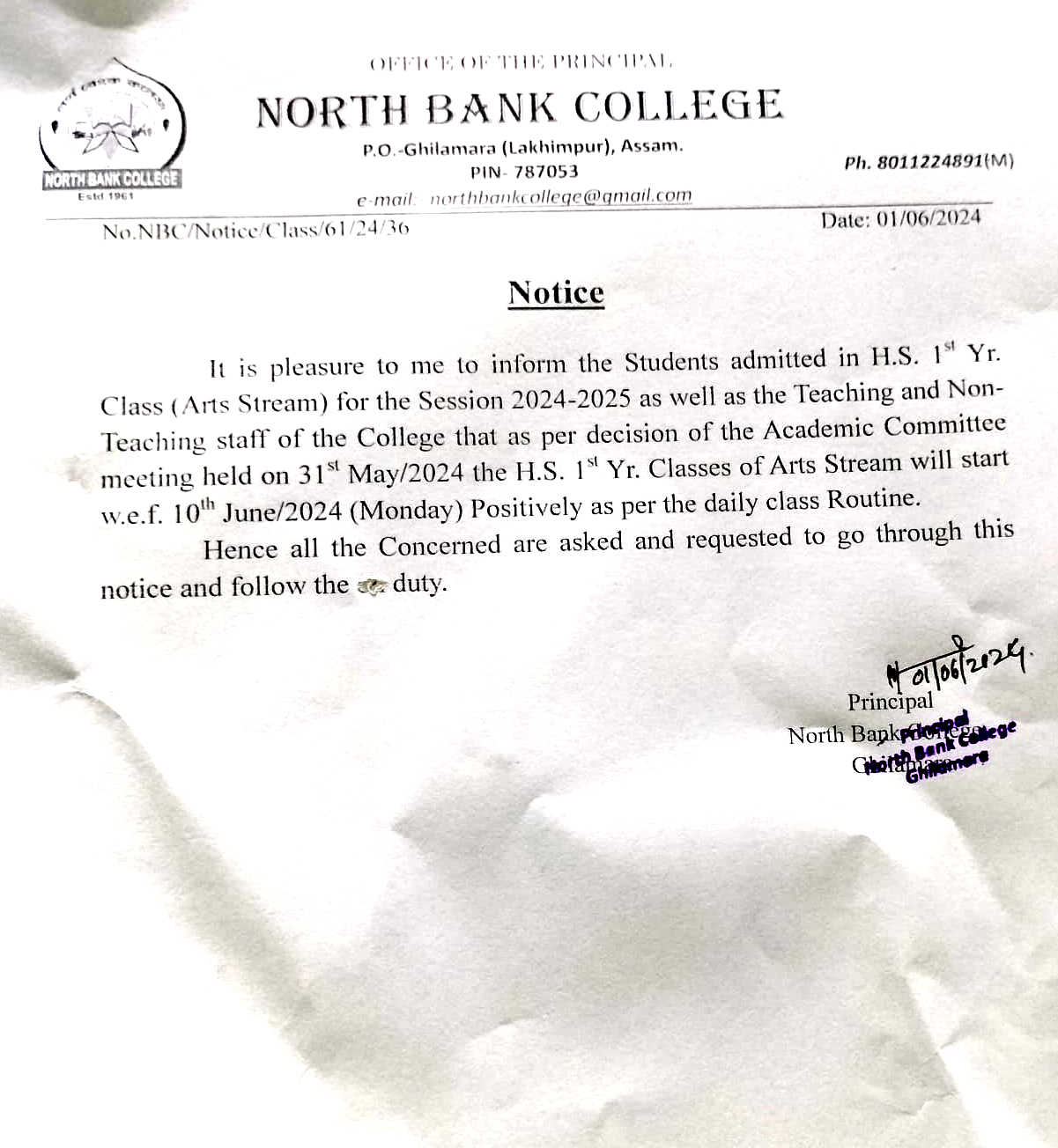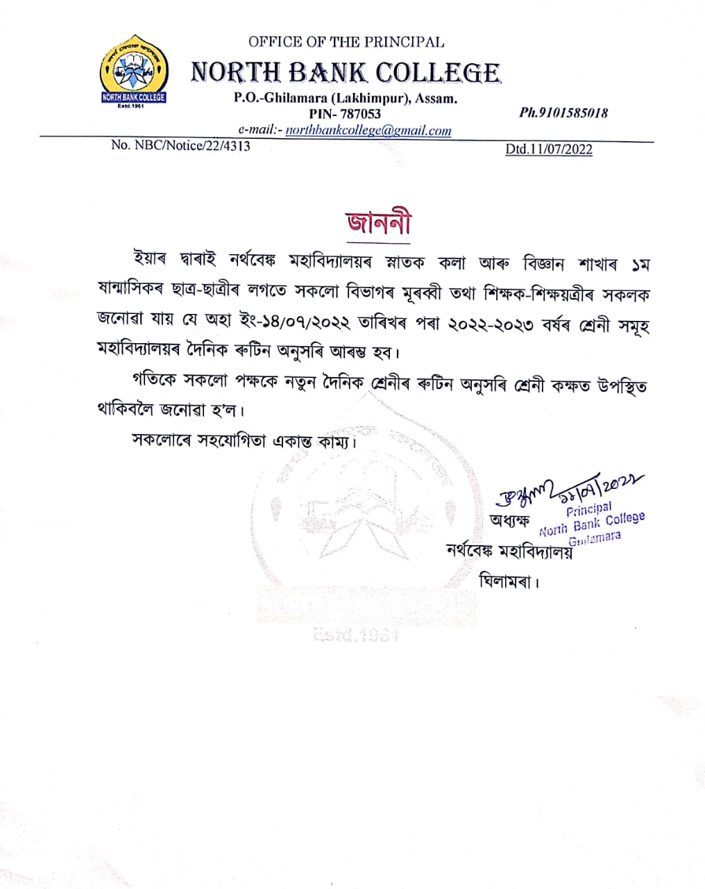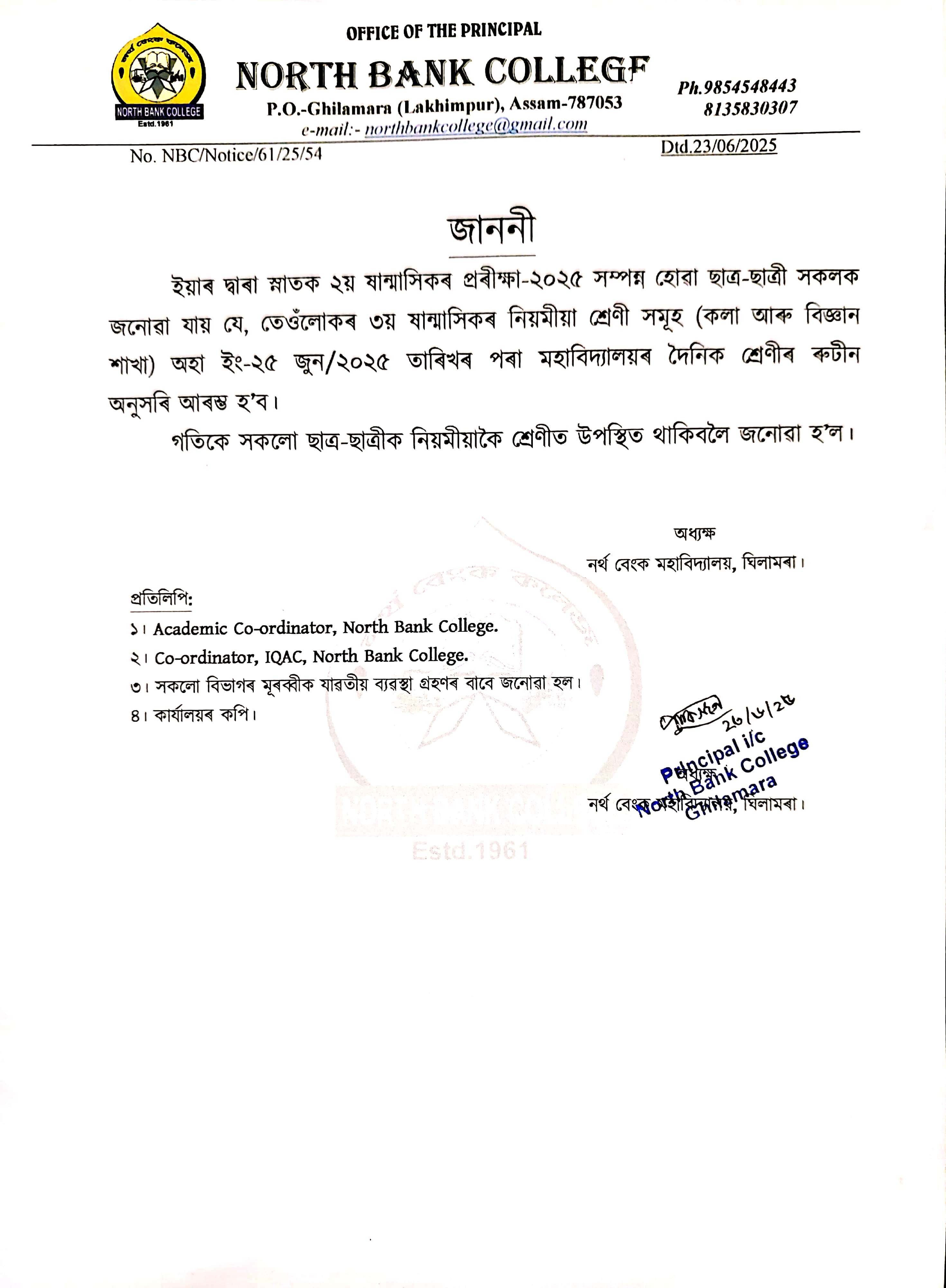 Daily Class Notice for BA and BSc 3rd Sem-2025