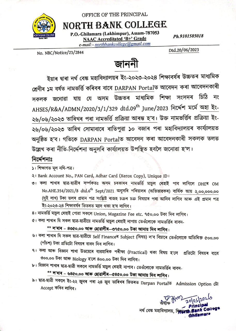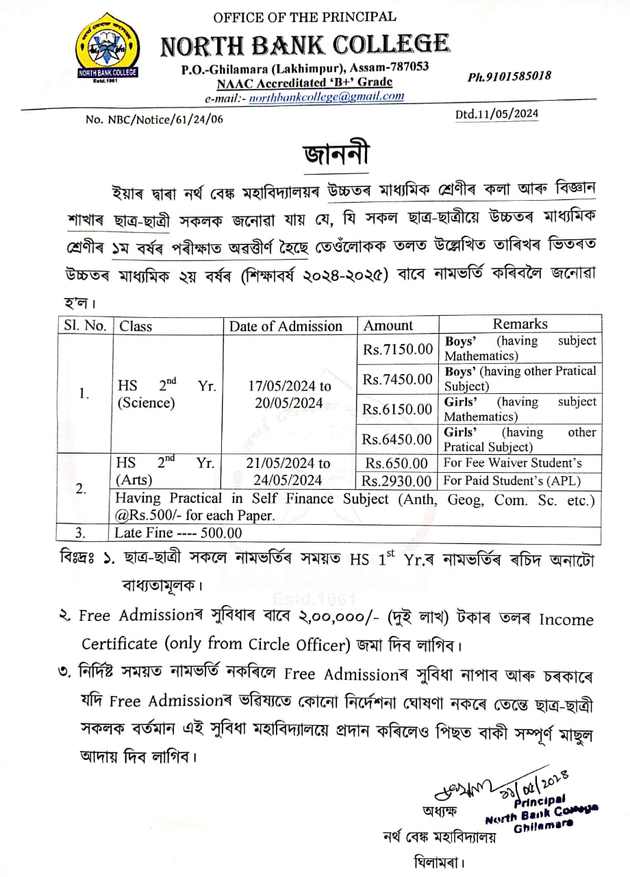 Admission Fee Return of HS 1st Year-2024 BPL Student