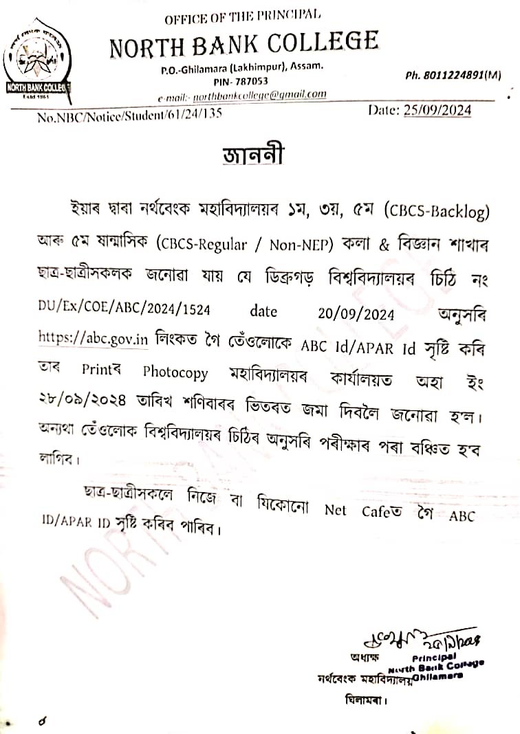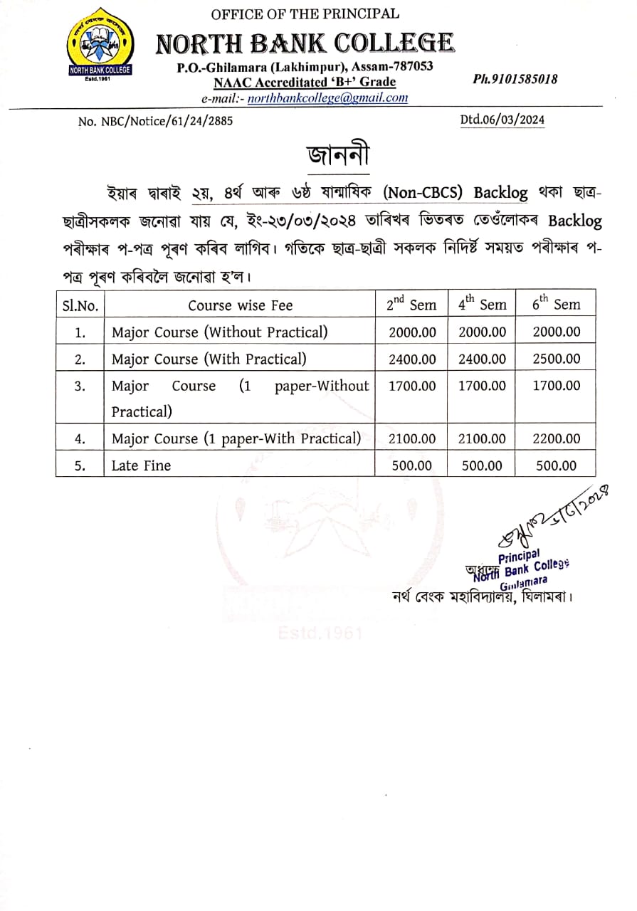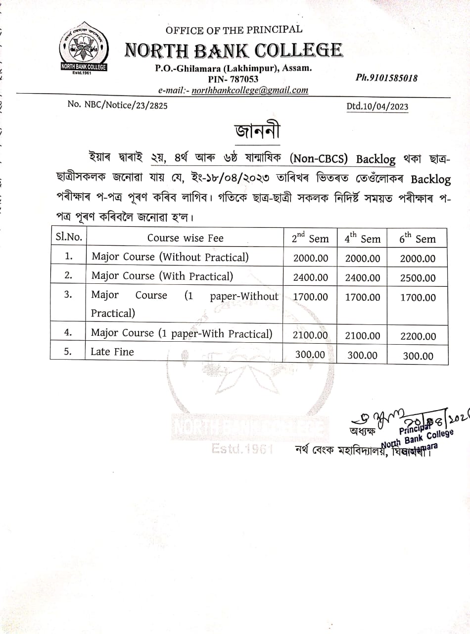Exam. Form Fill Up Notice 1st, 3rd and 5t Sem (CBCS) Backlog-2025
