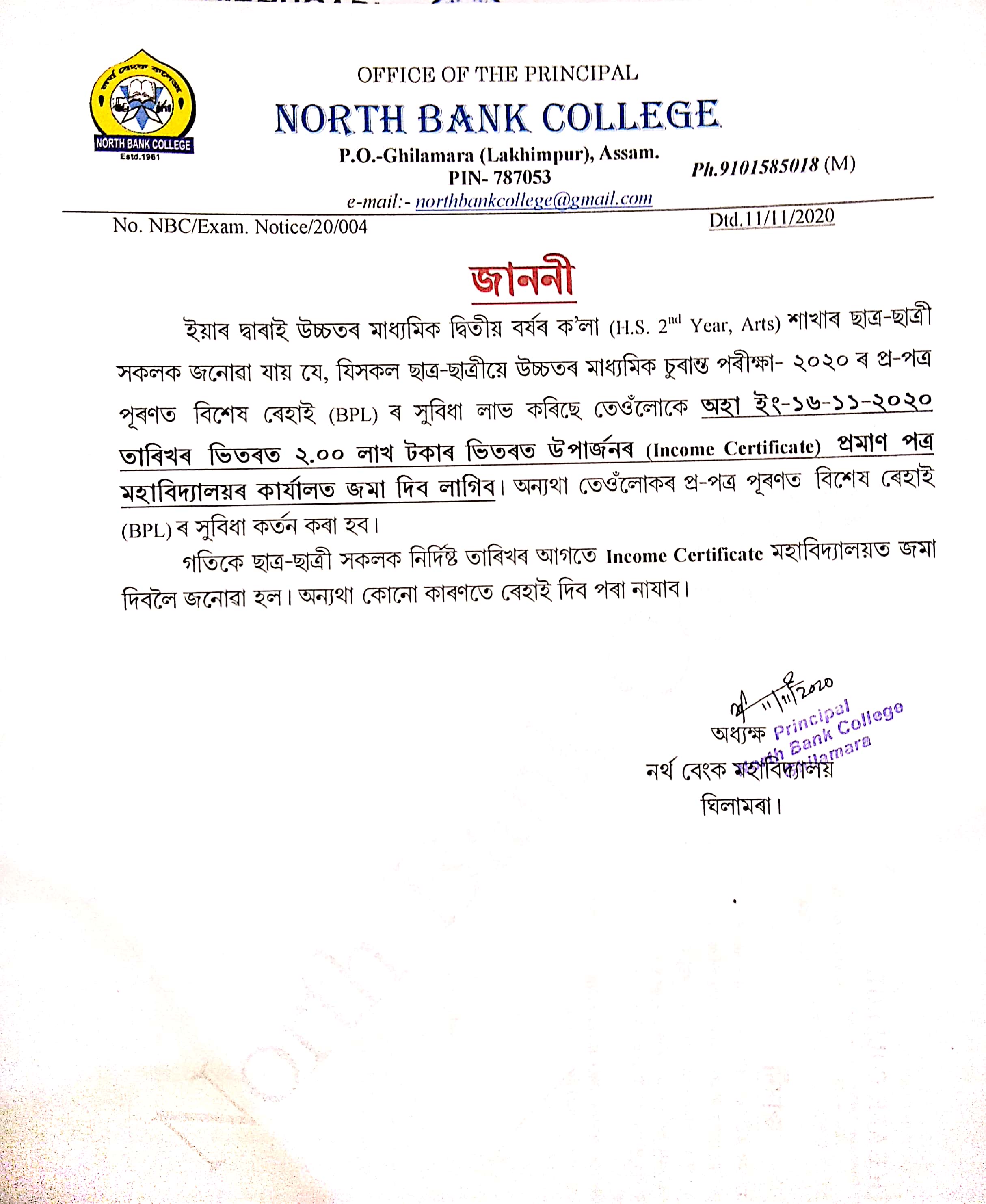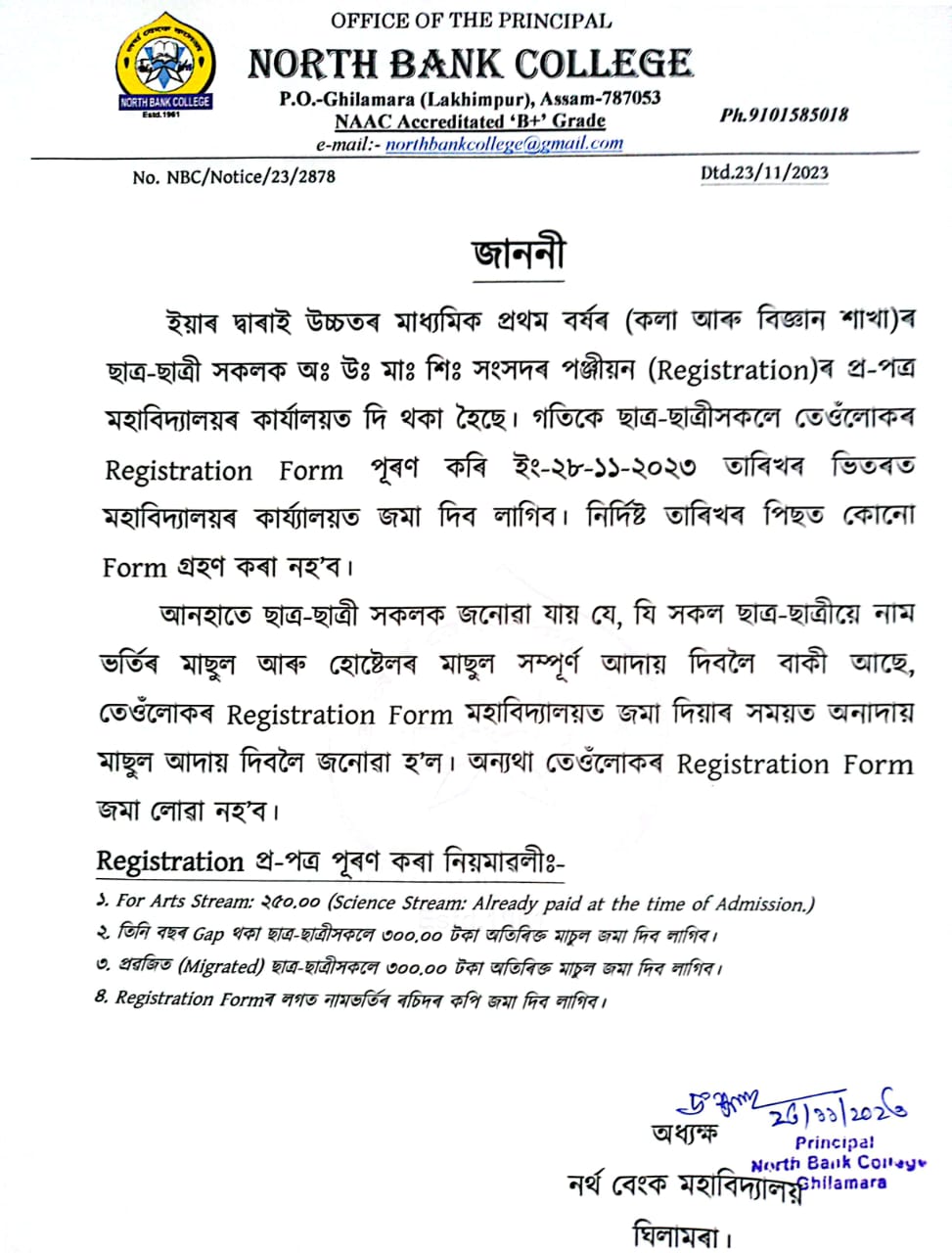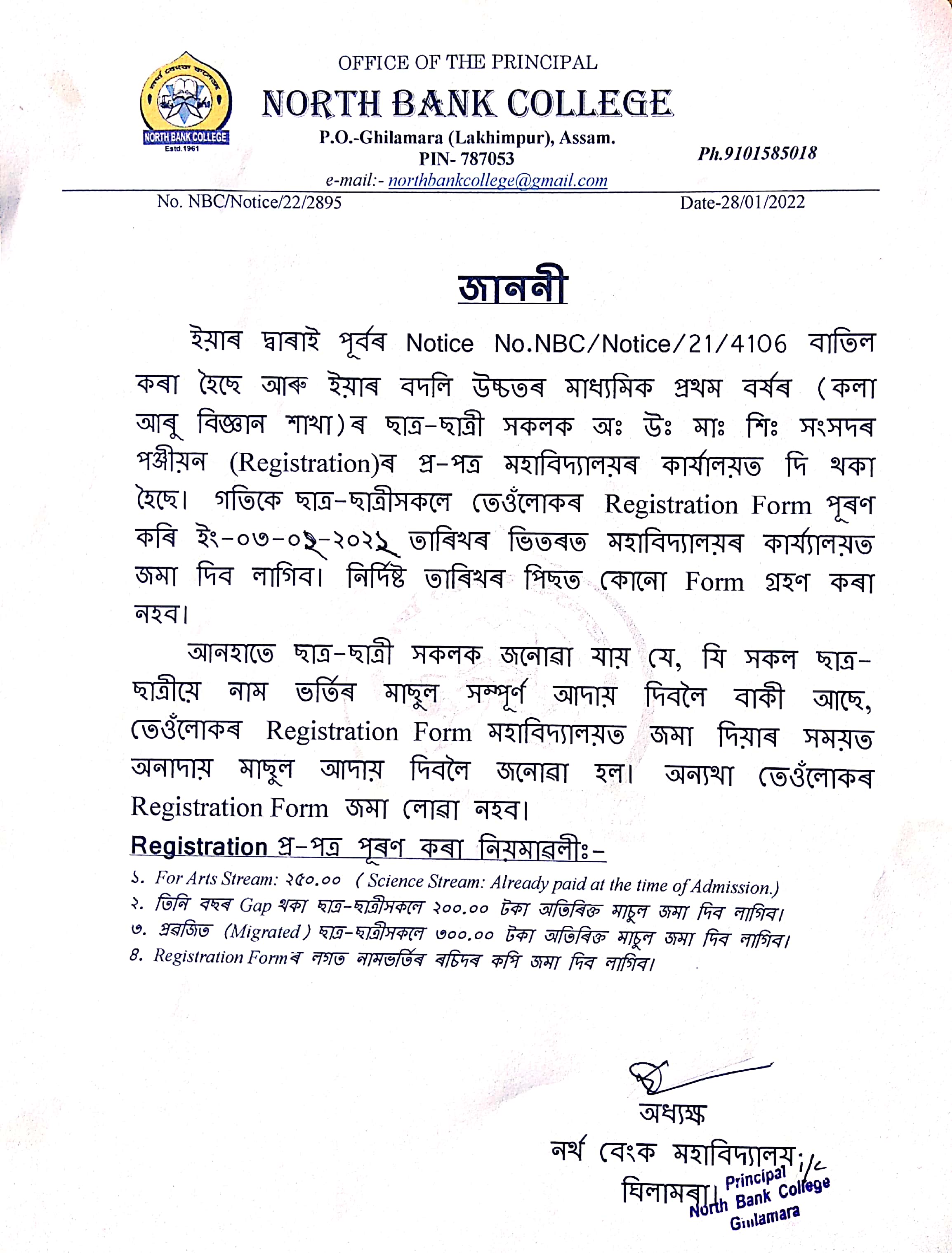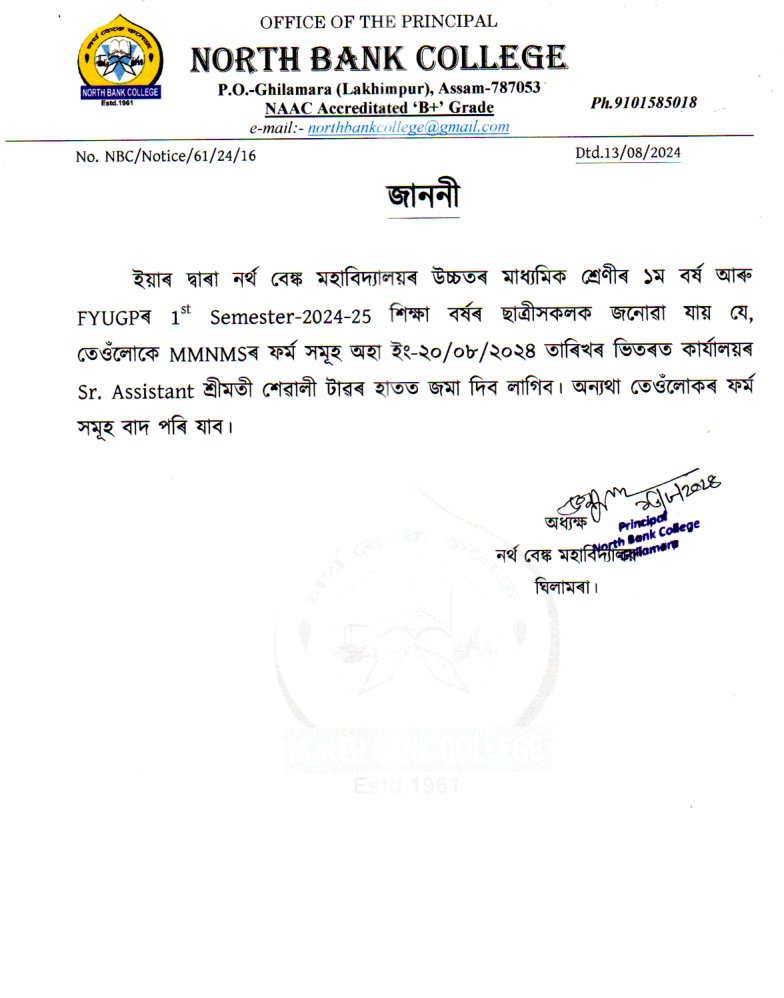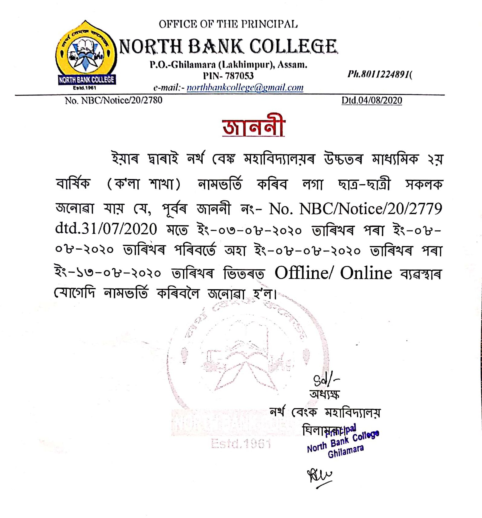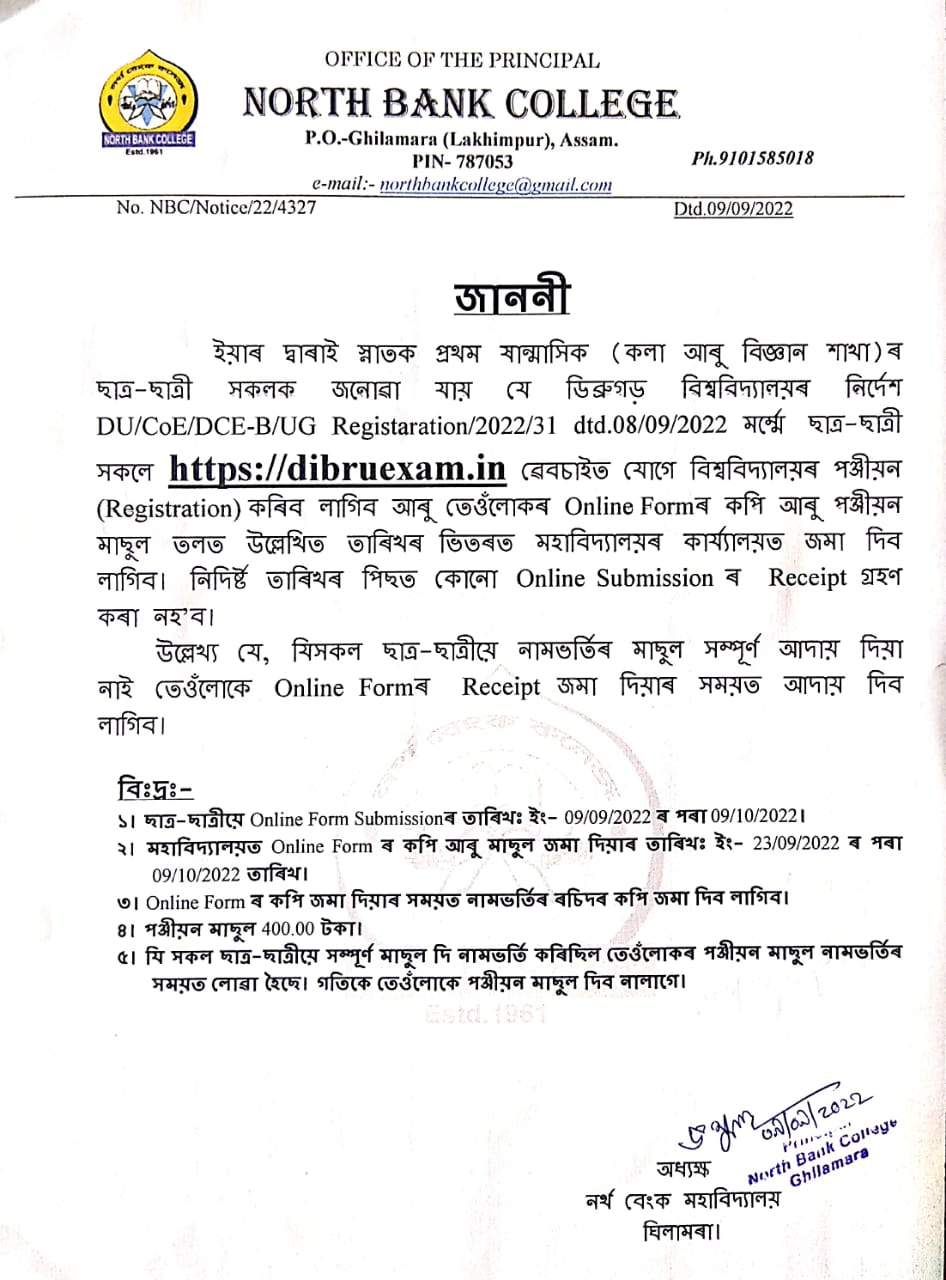 Exam. Form Fillup Notice for 1st, 3rd and 5th Sem (Non CBCS) 2020