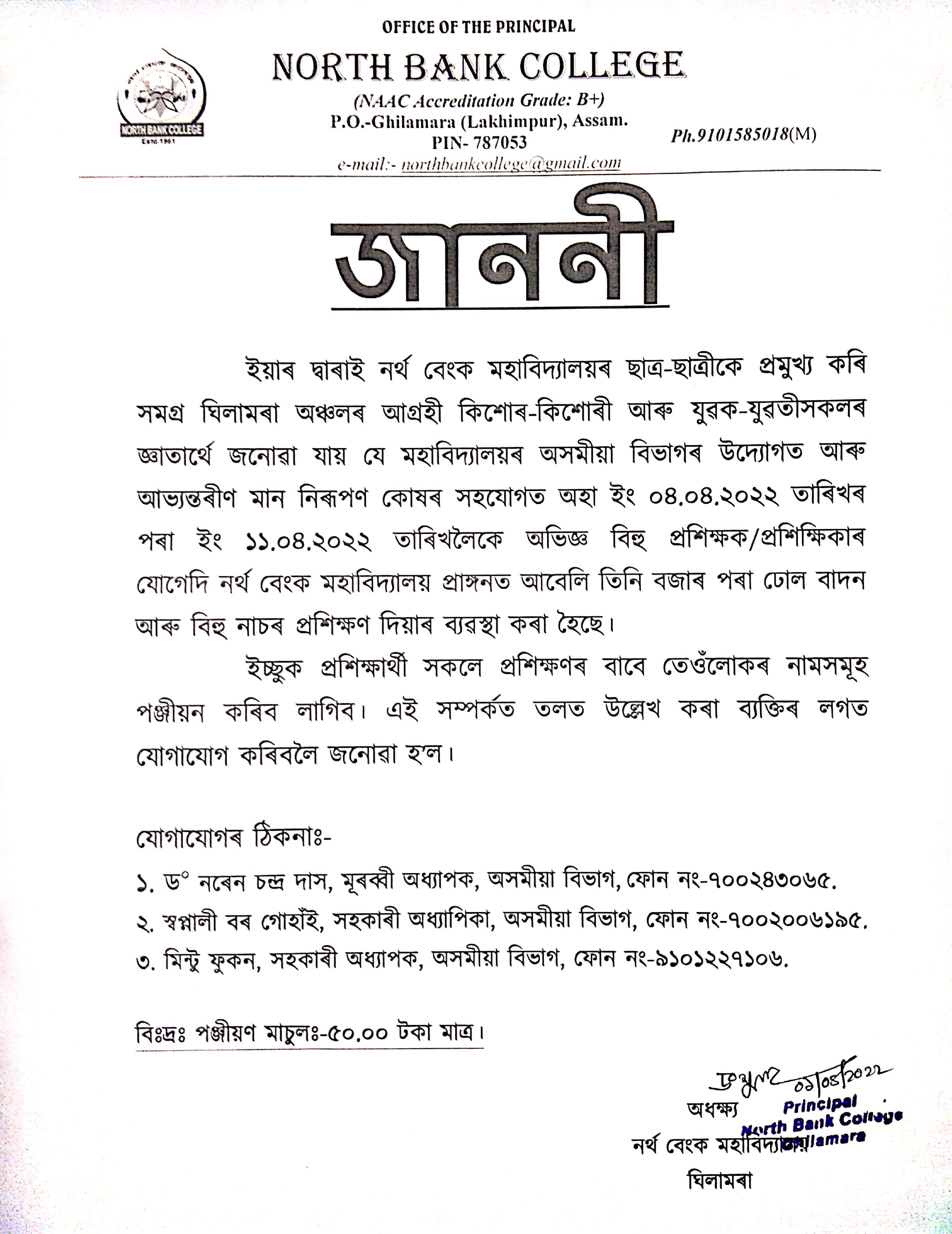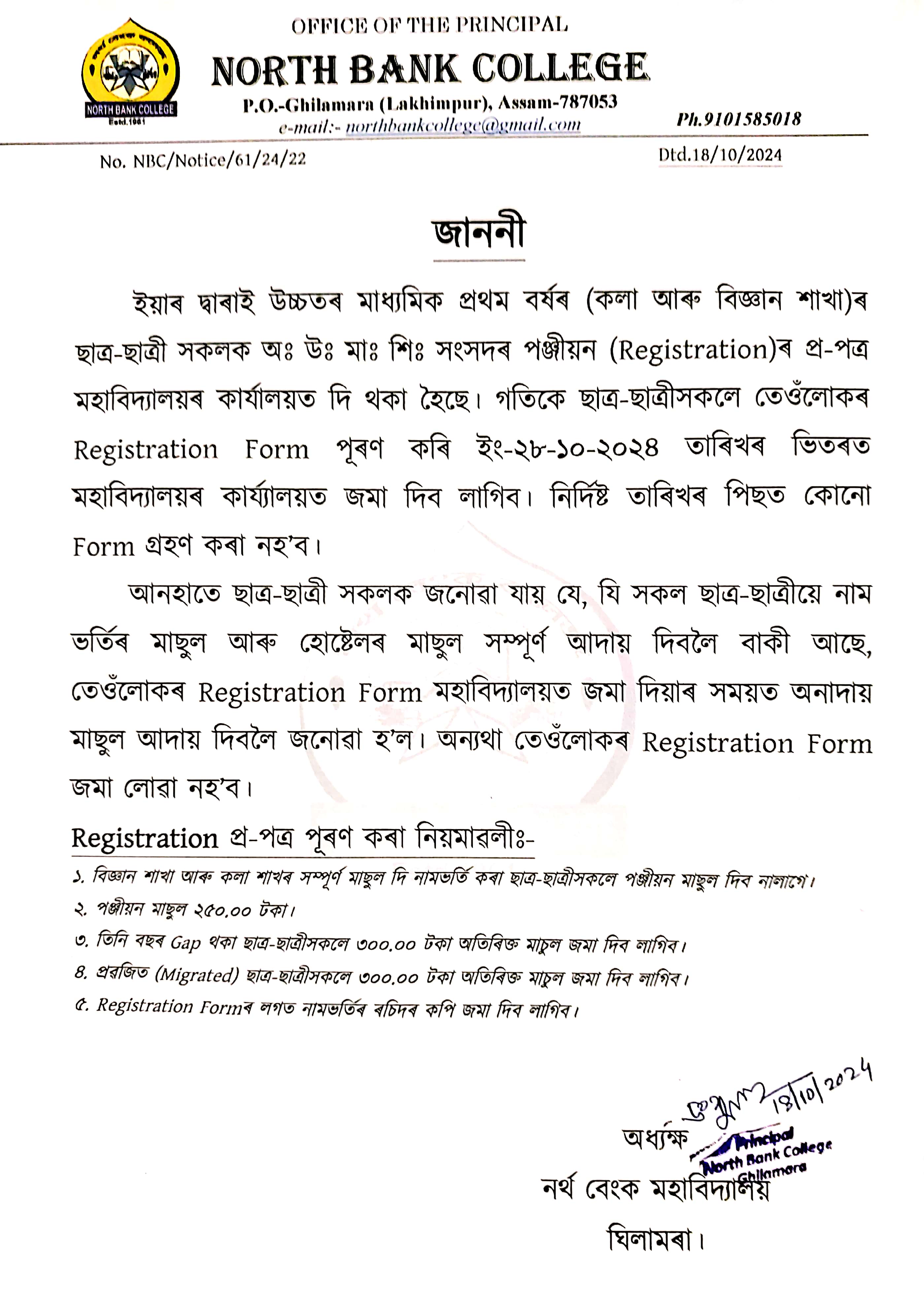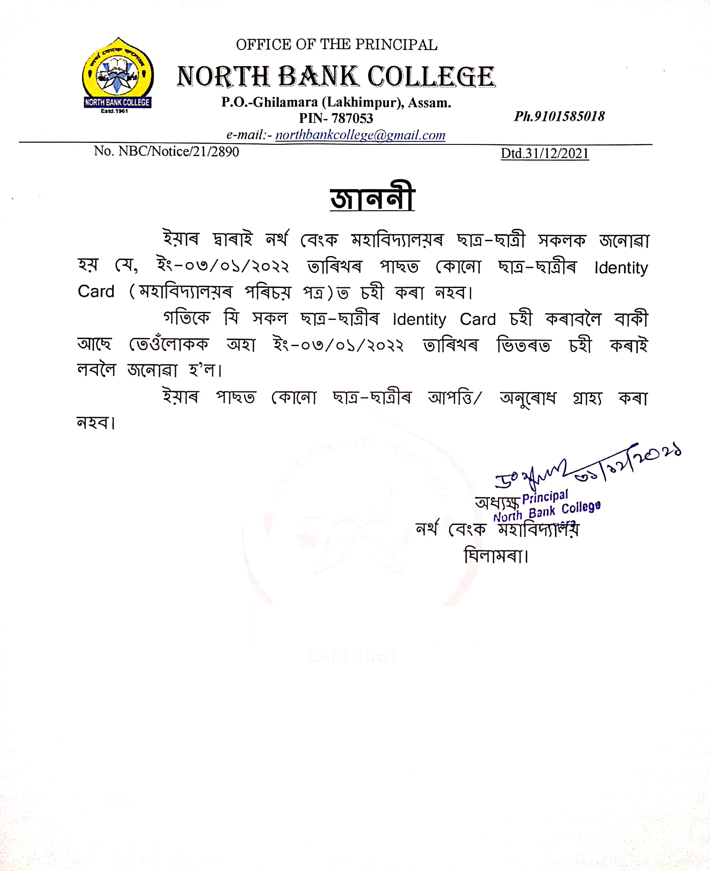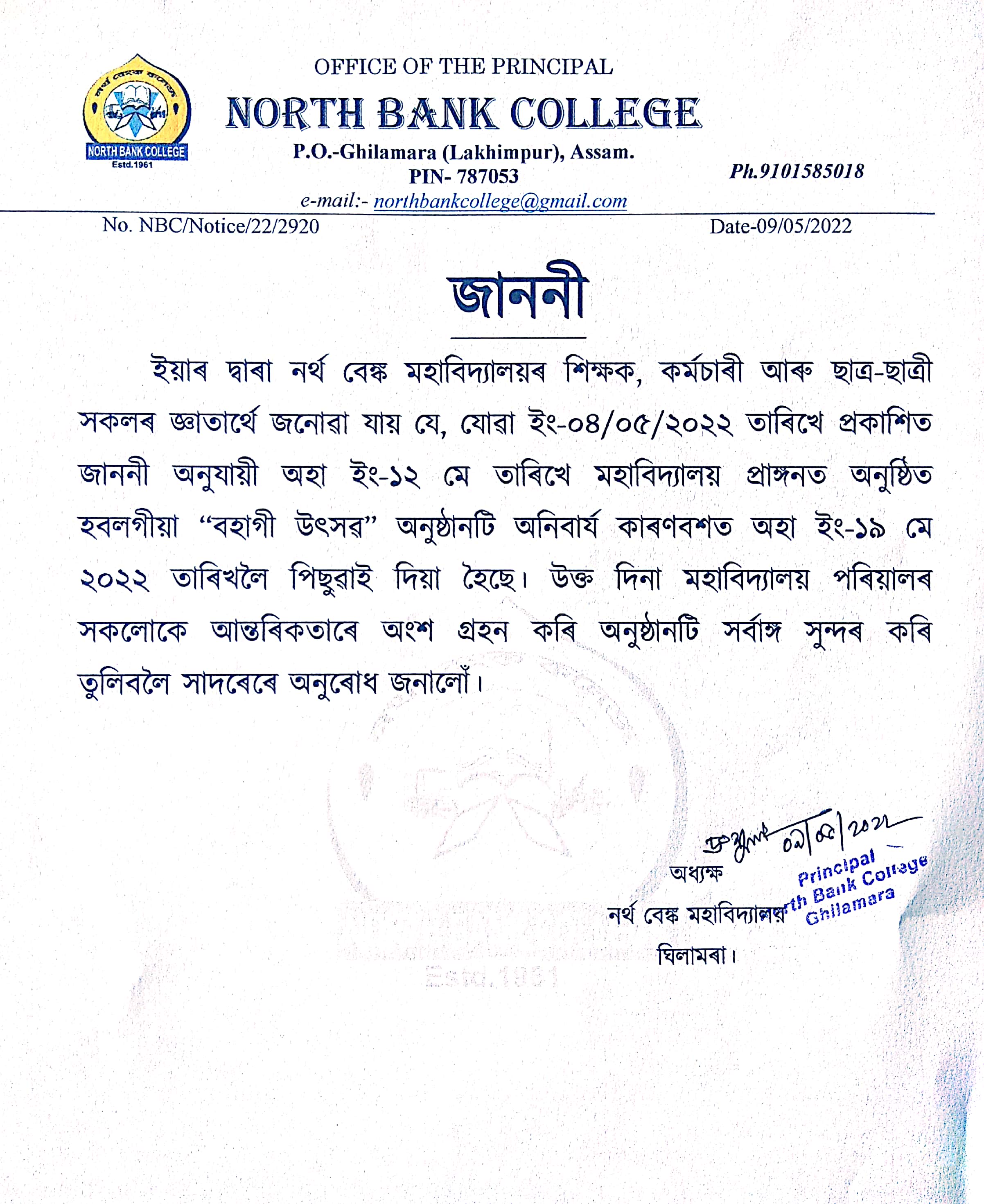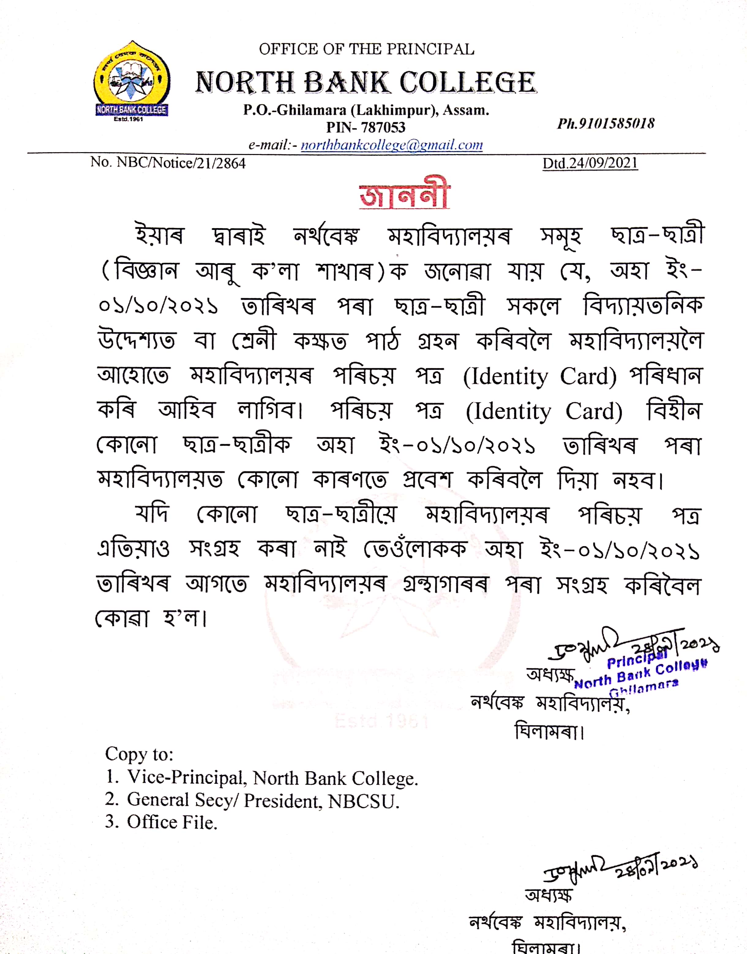 Exam. Form Fillup Notice for 1st, 3rd and 5th Sem (Non CBCS) 2020