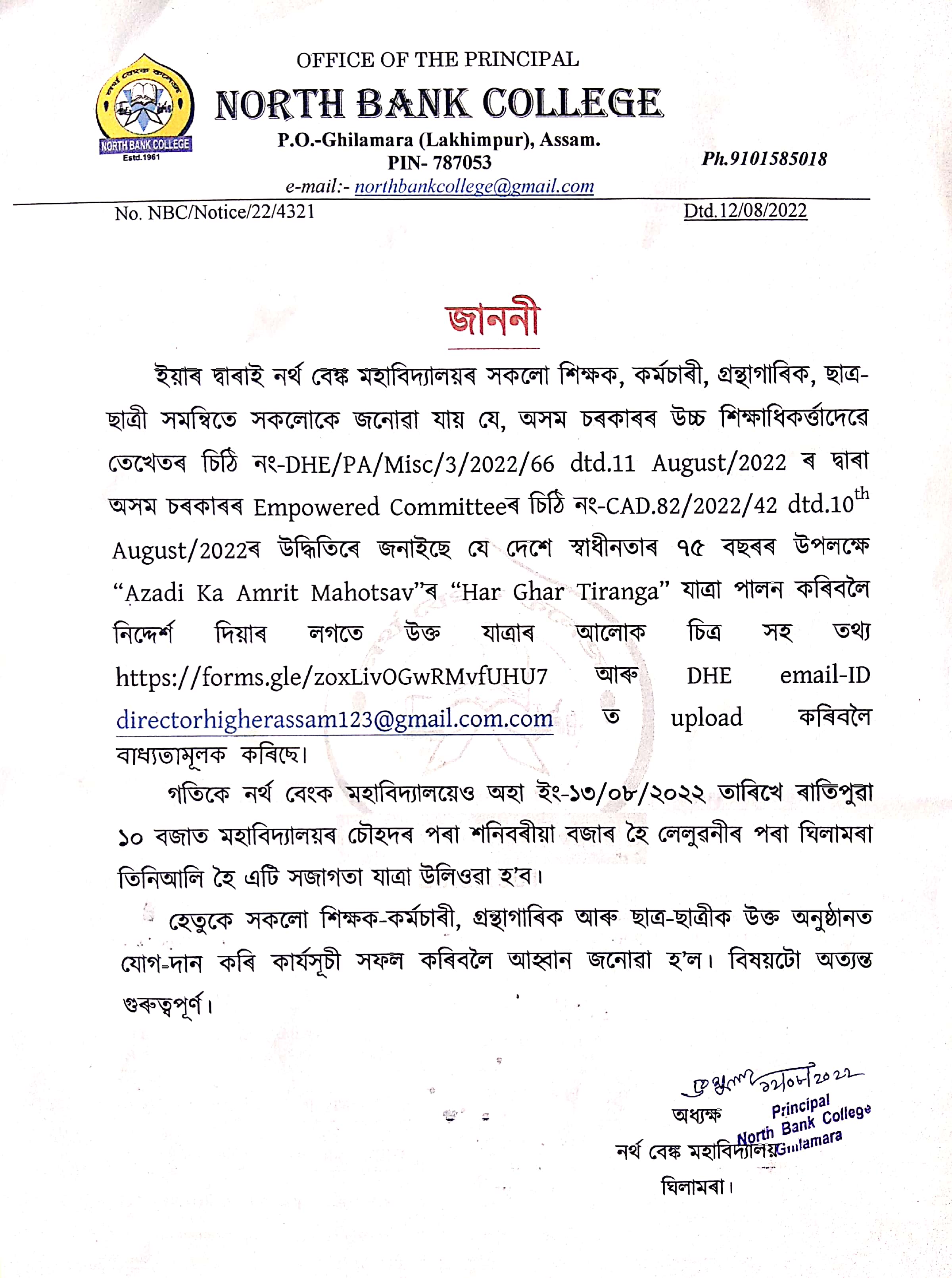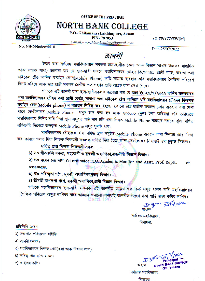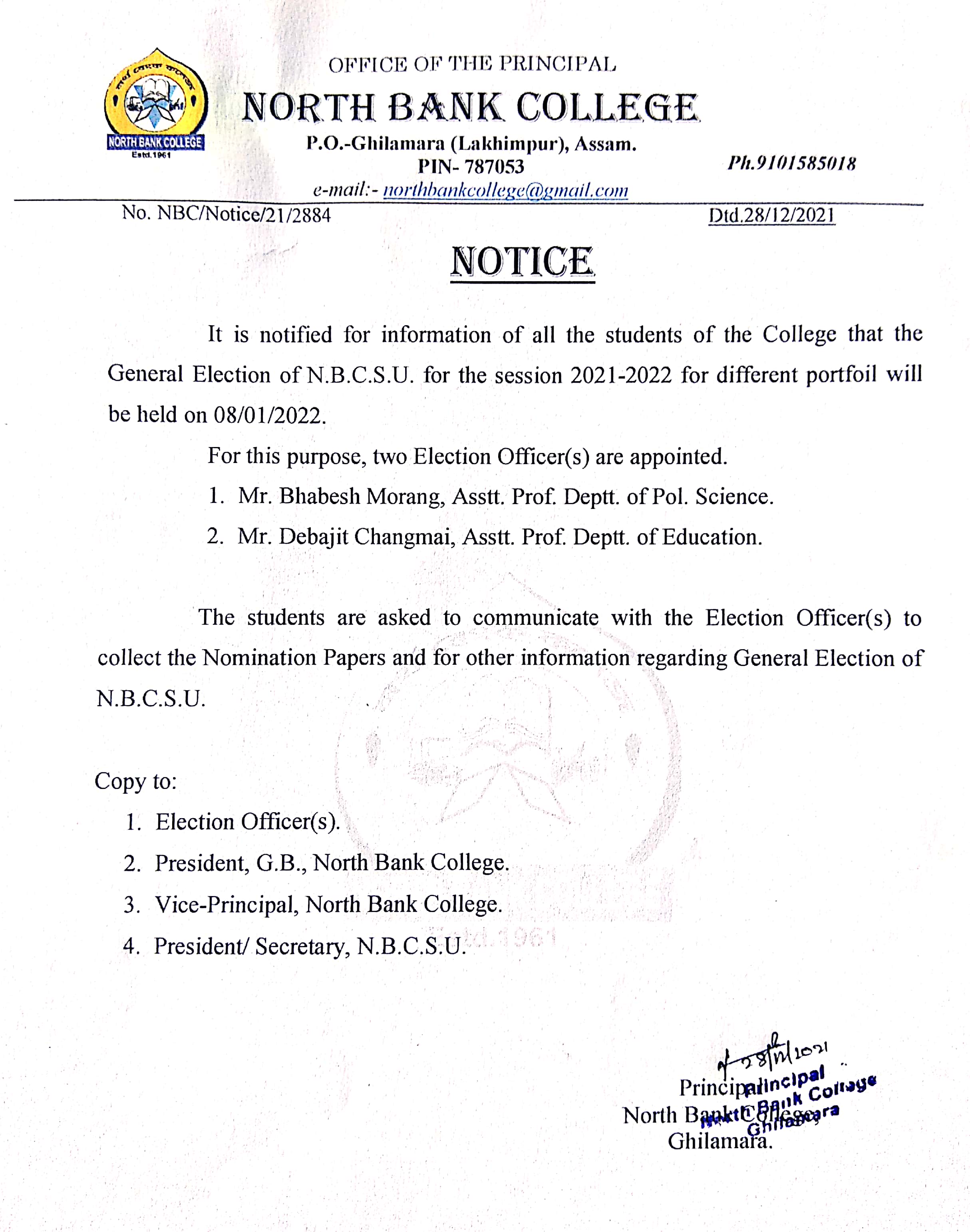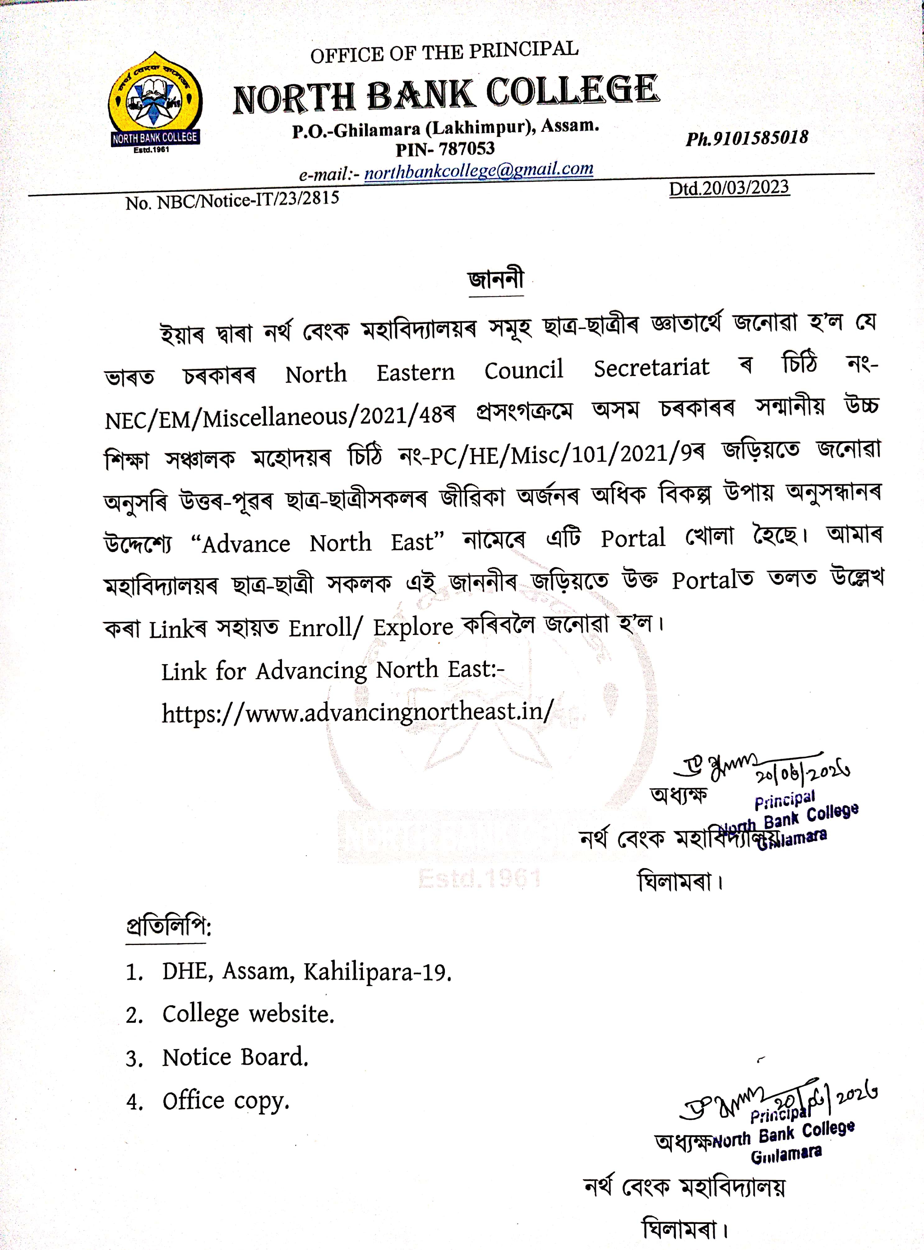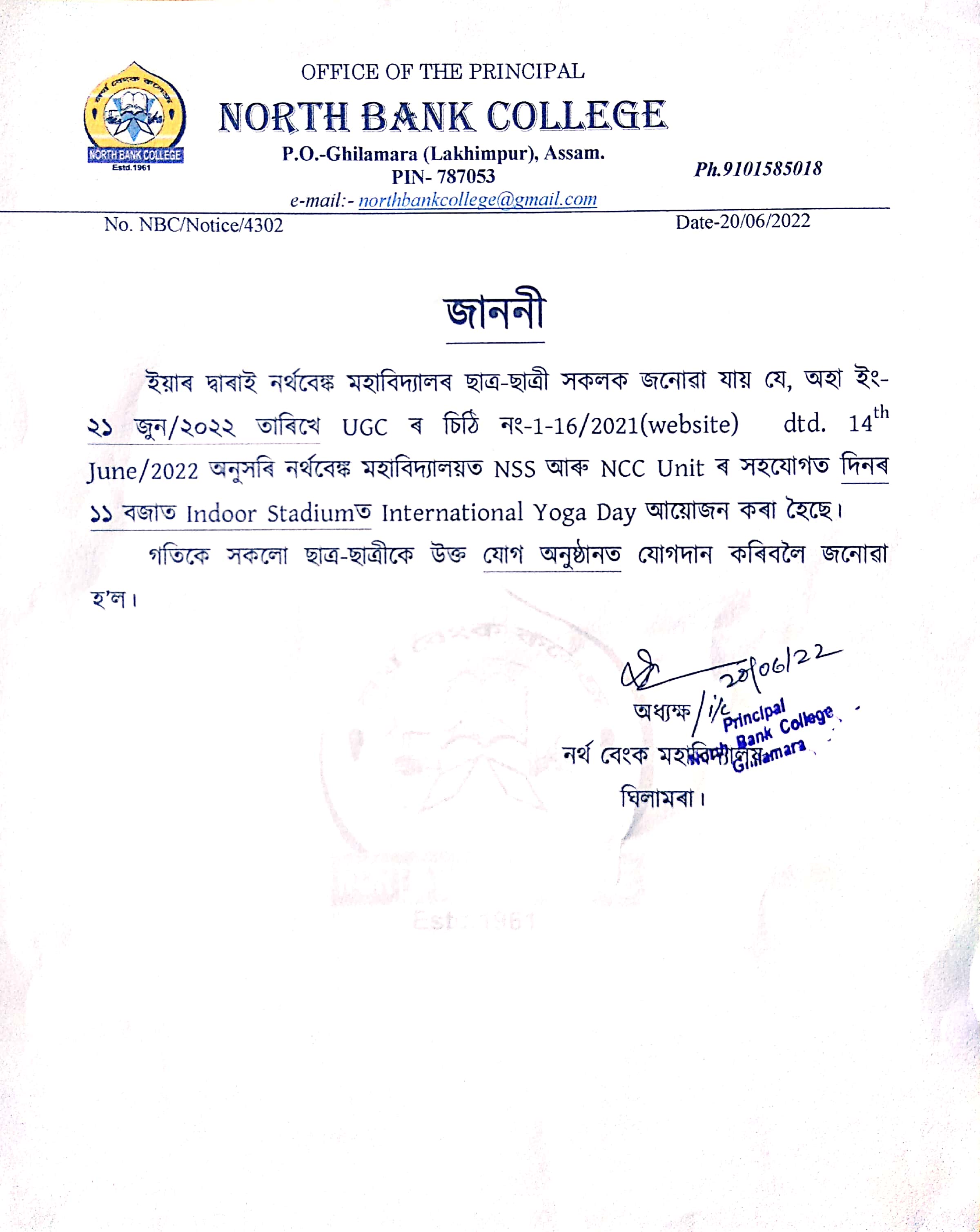 Exam. Form Fillup Notice for 1st, 3rd and 5th Sem (Non CBCS) 2020
