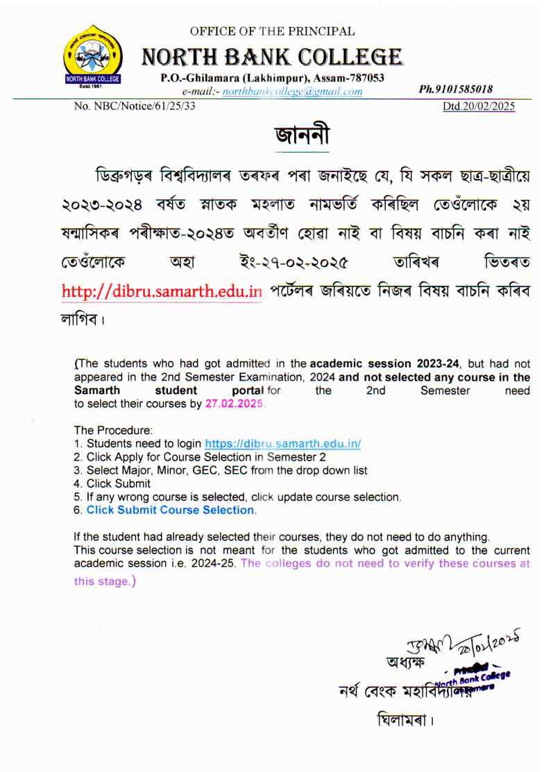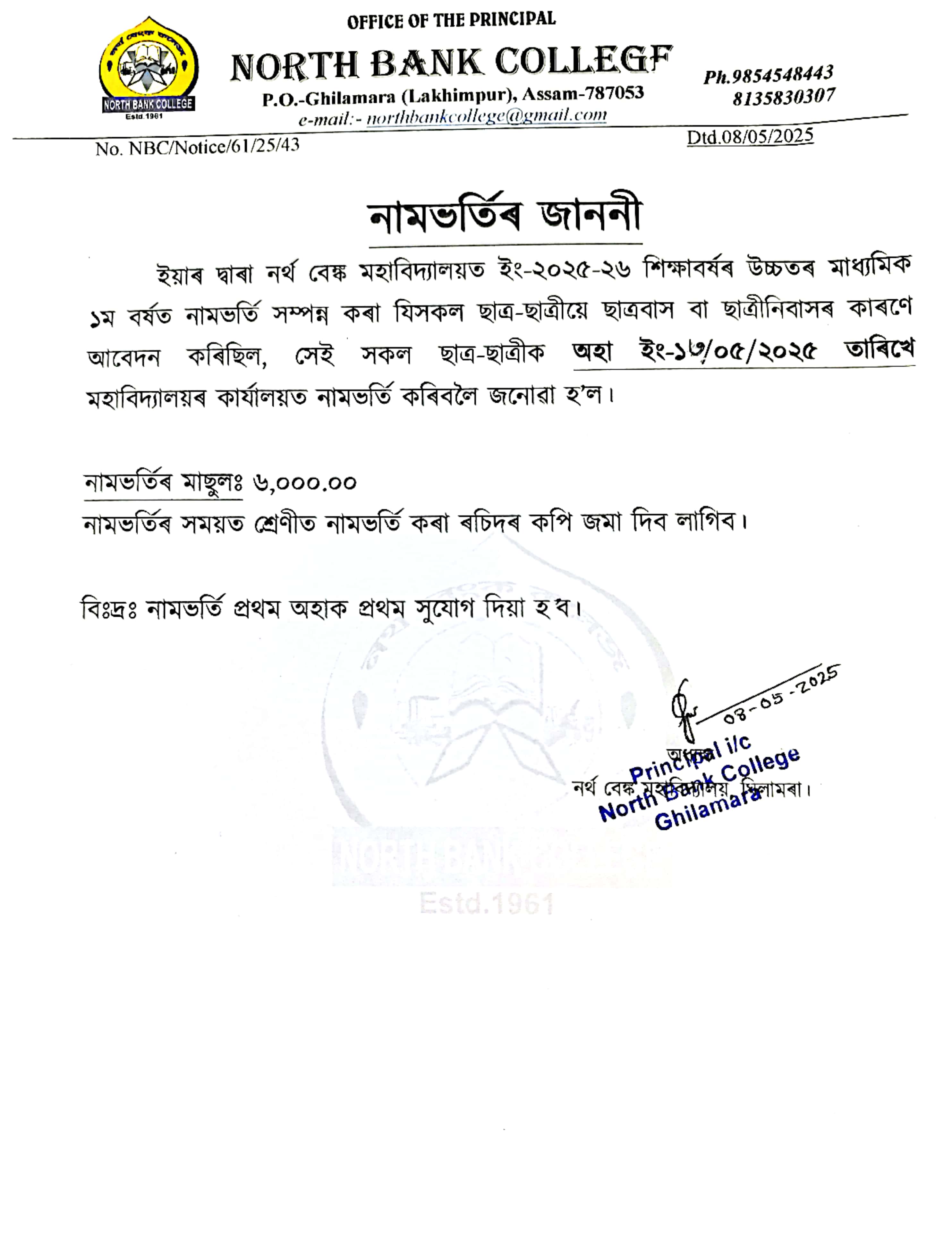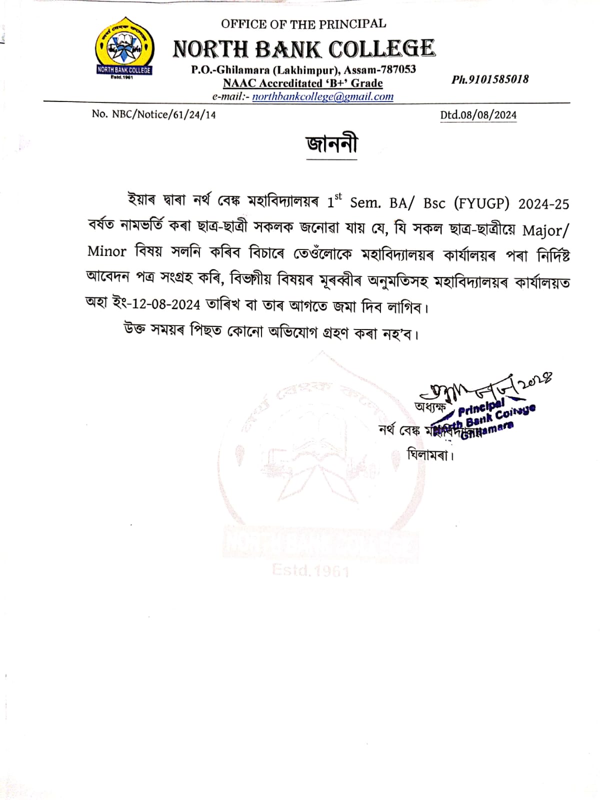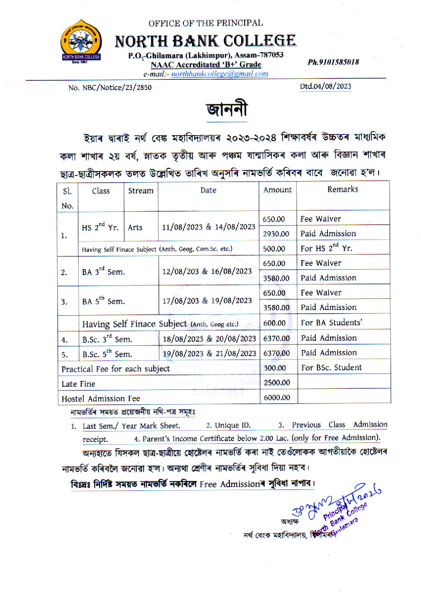 Admission Notice for BA & BSc 3rd Sem and 5th Sem-2025-26