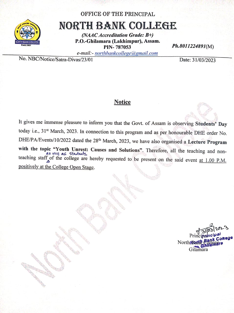 Notification for 1st Sessional Exam (1st, 3rd and 5th Sem)