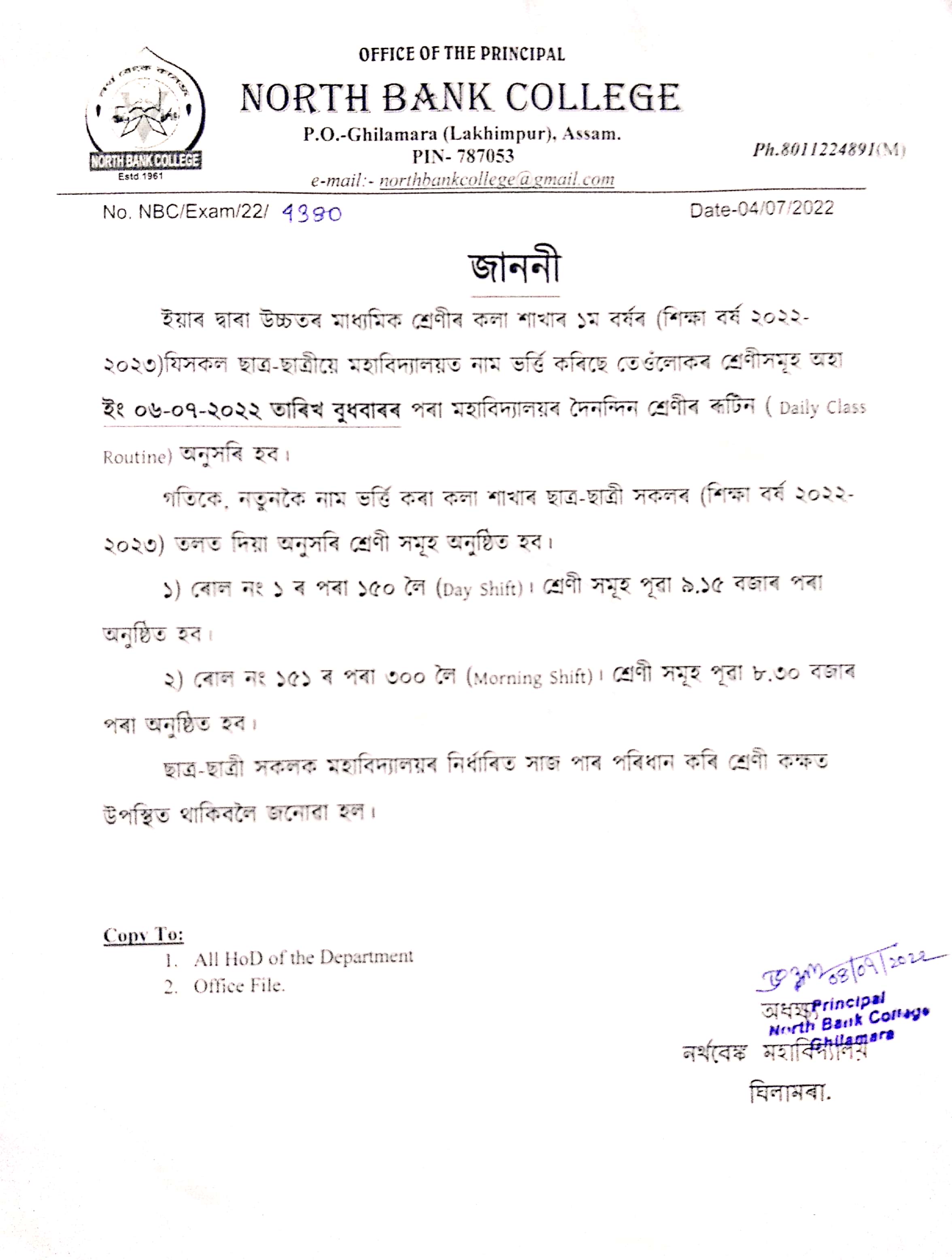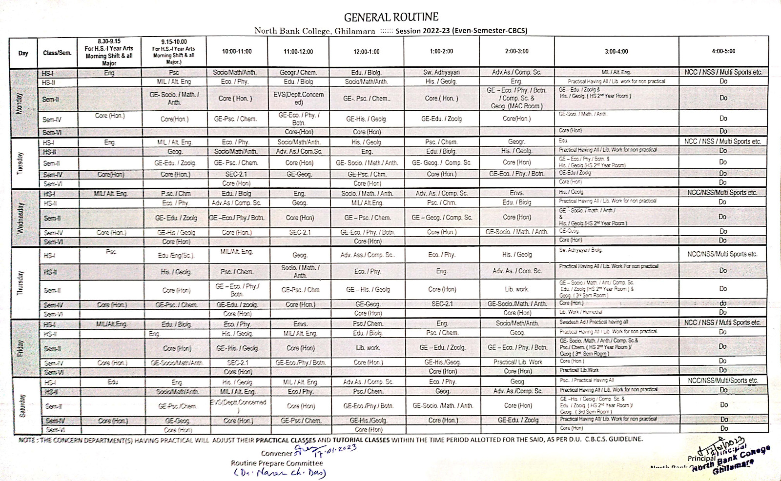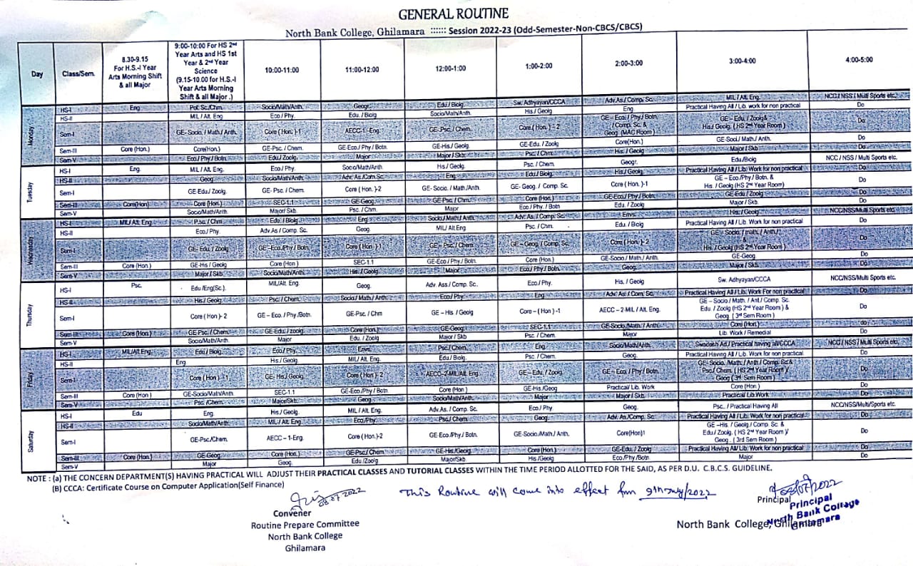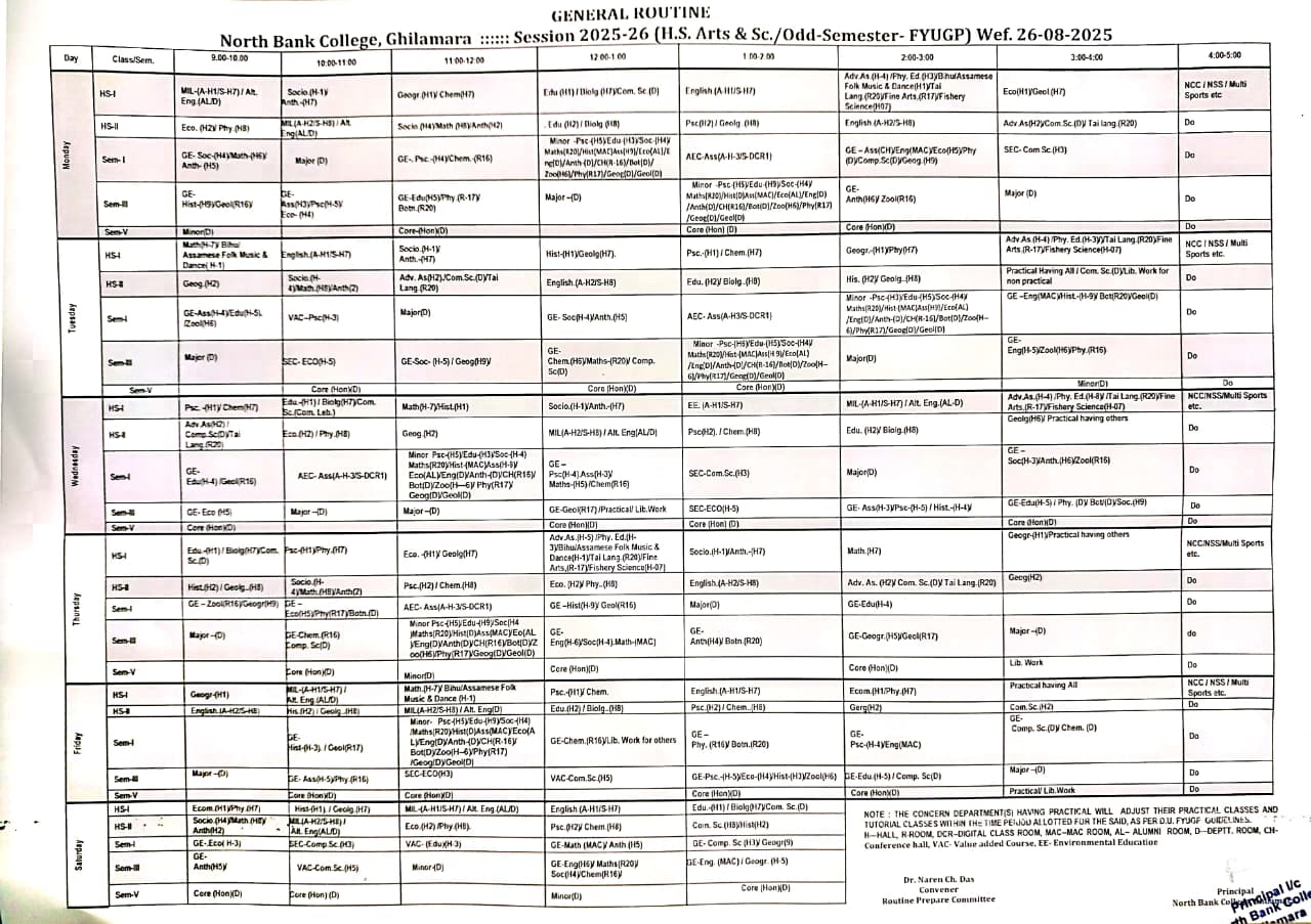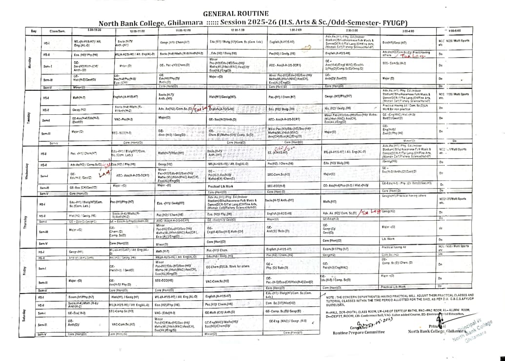 Daily Class Routine-2025 of HS and FYUGP (Odd Sem)