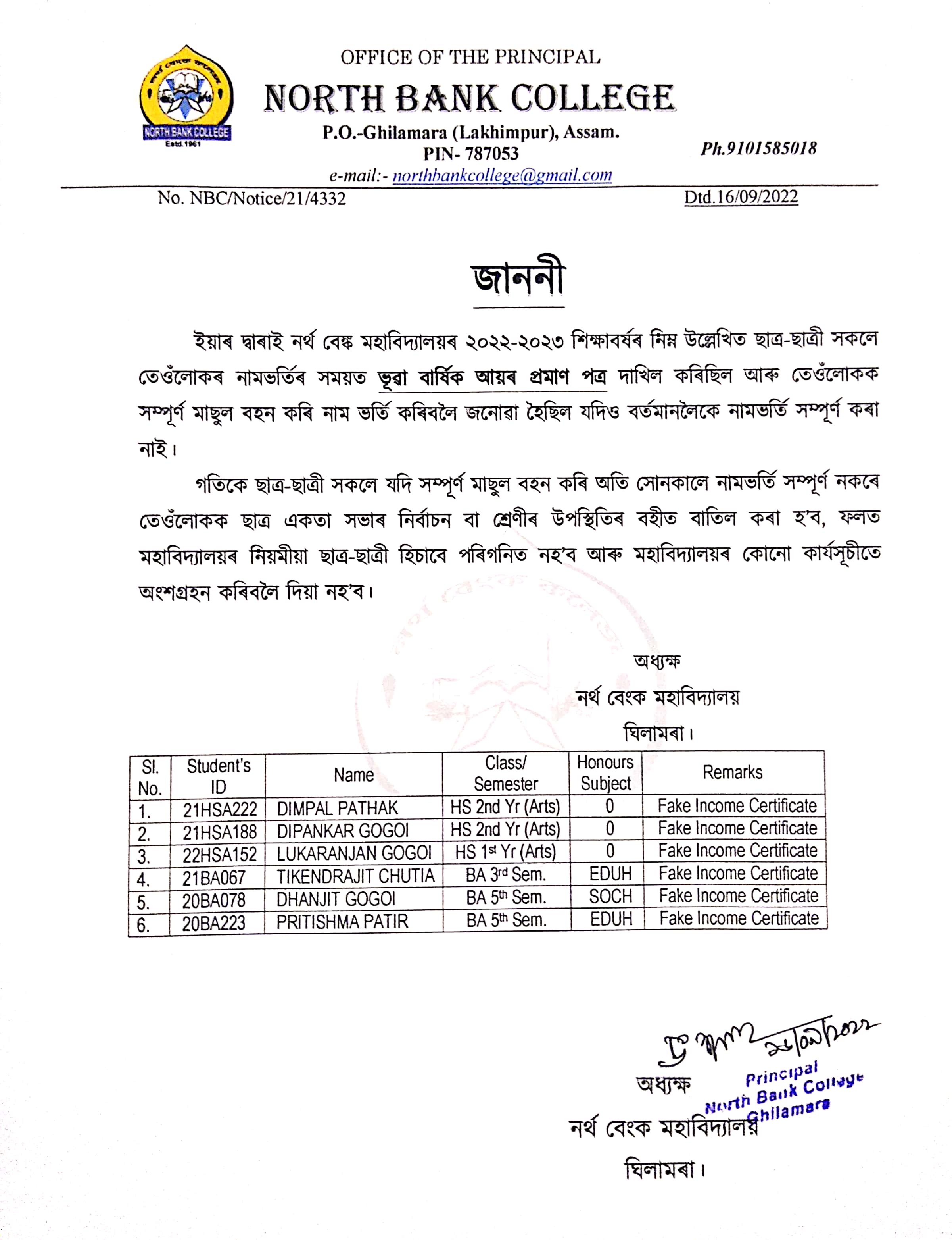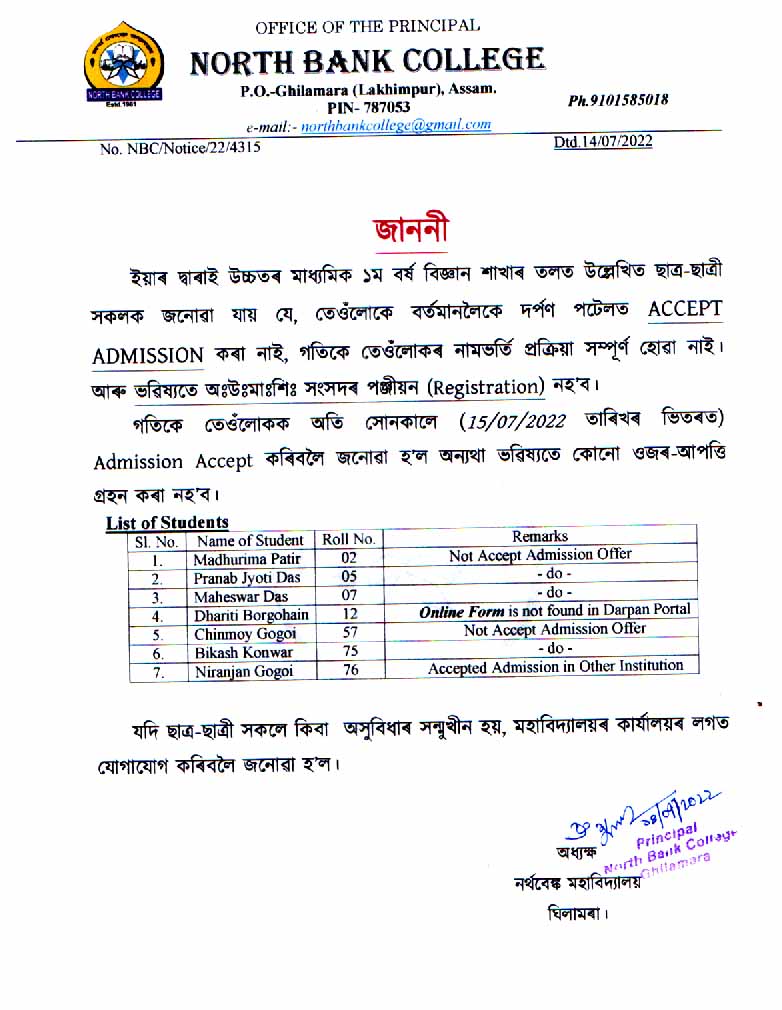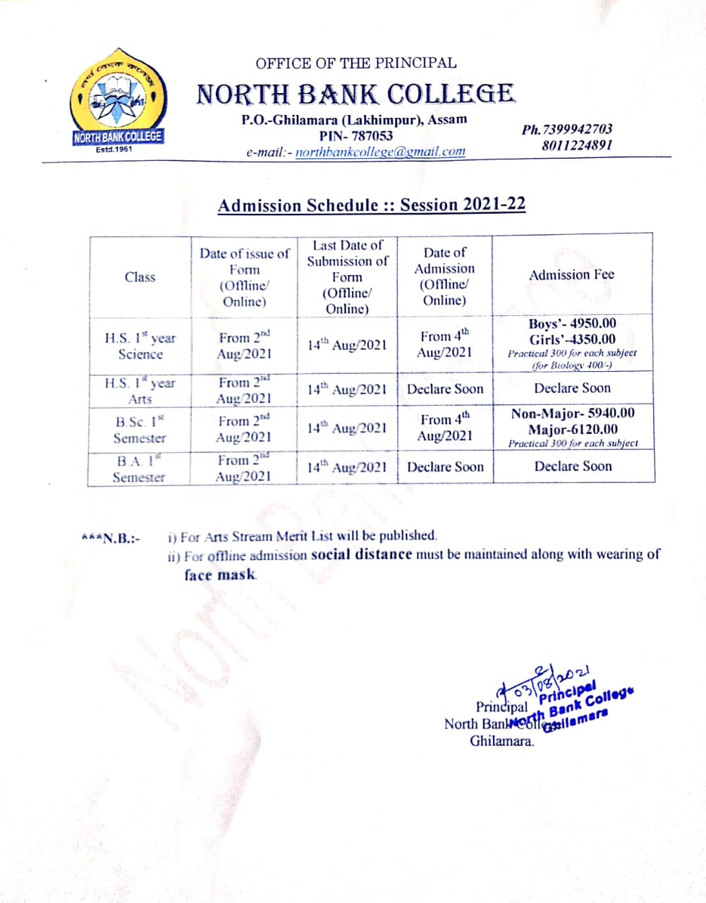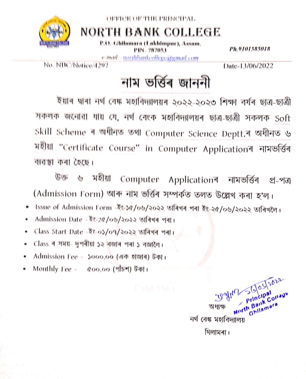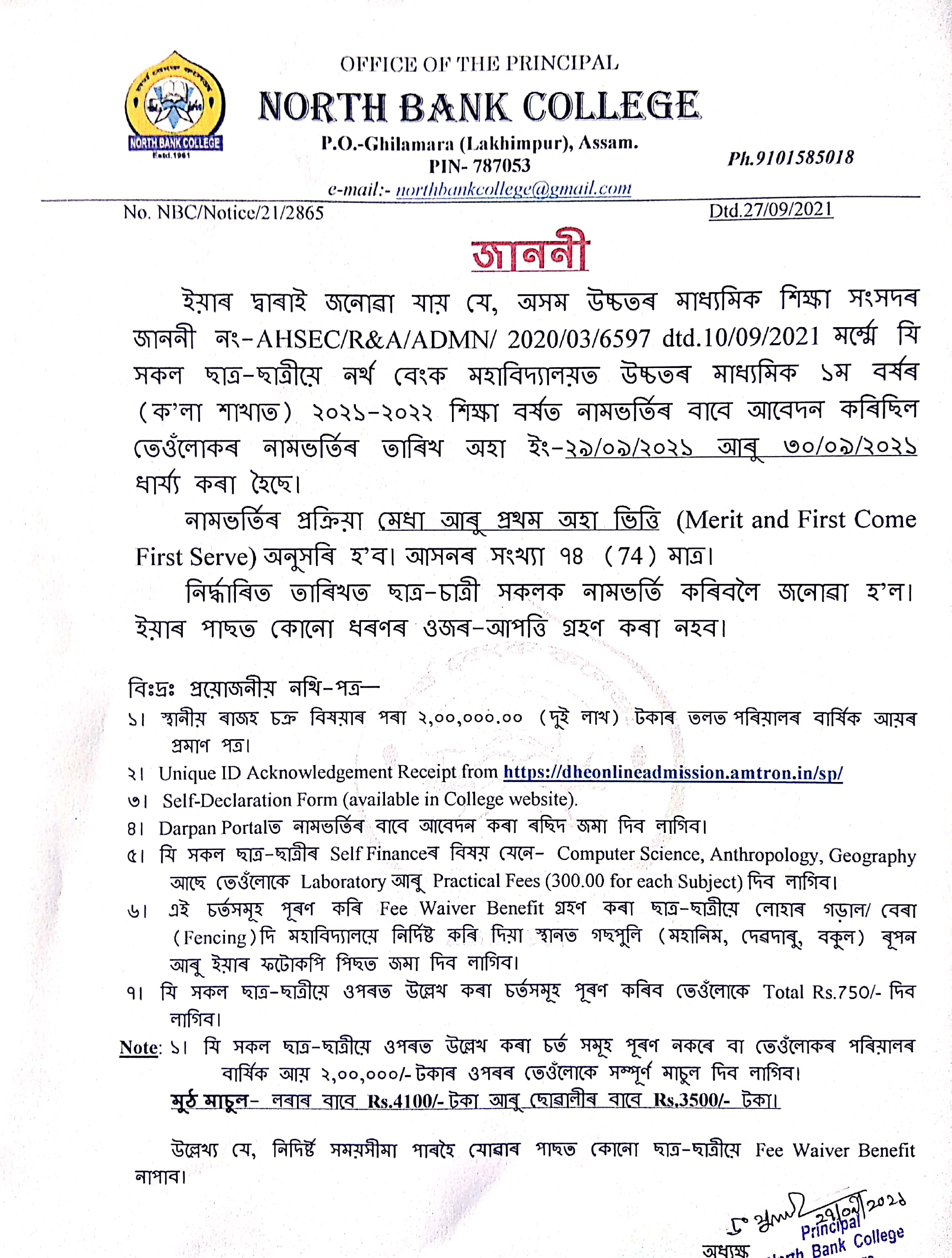 Notification for Complete of Admission Fee of B.Sc. 1st Sem.-2020