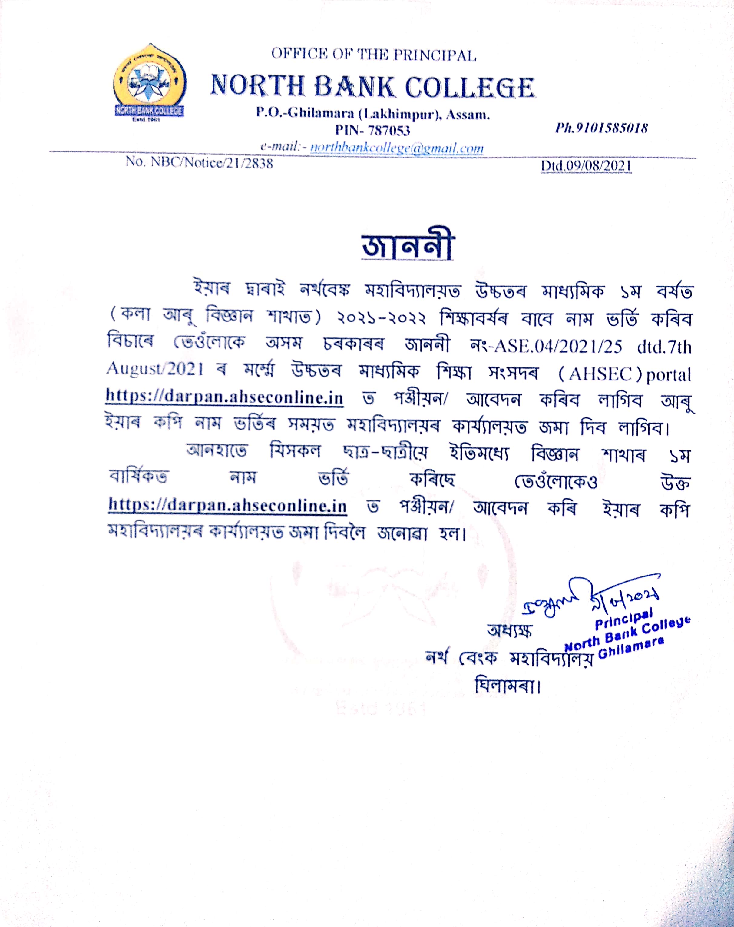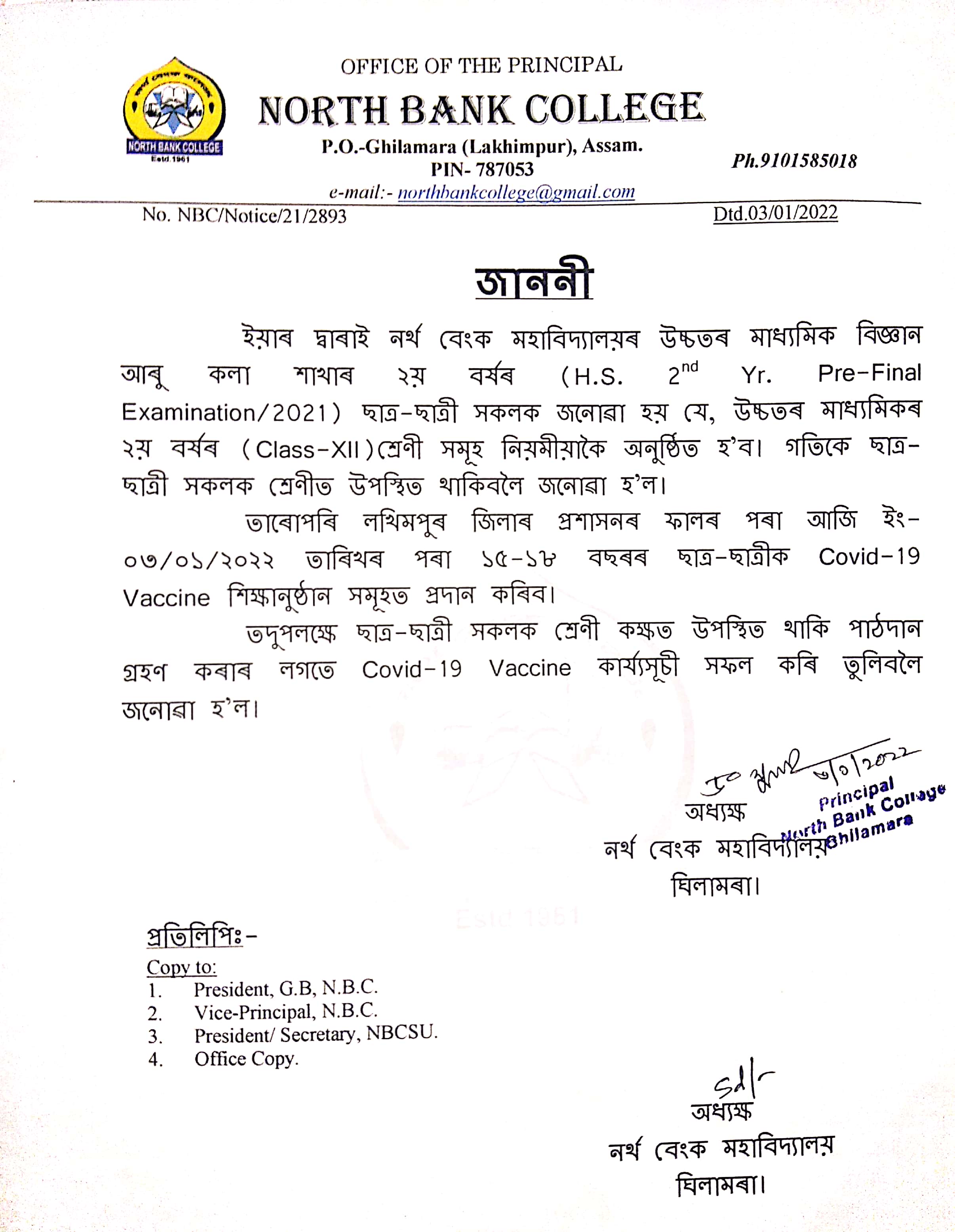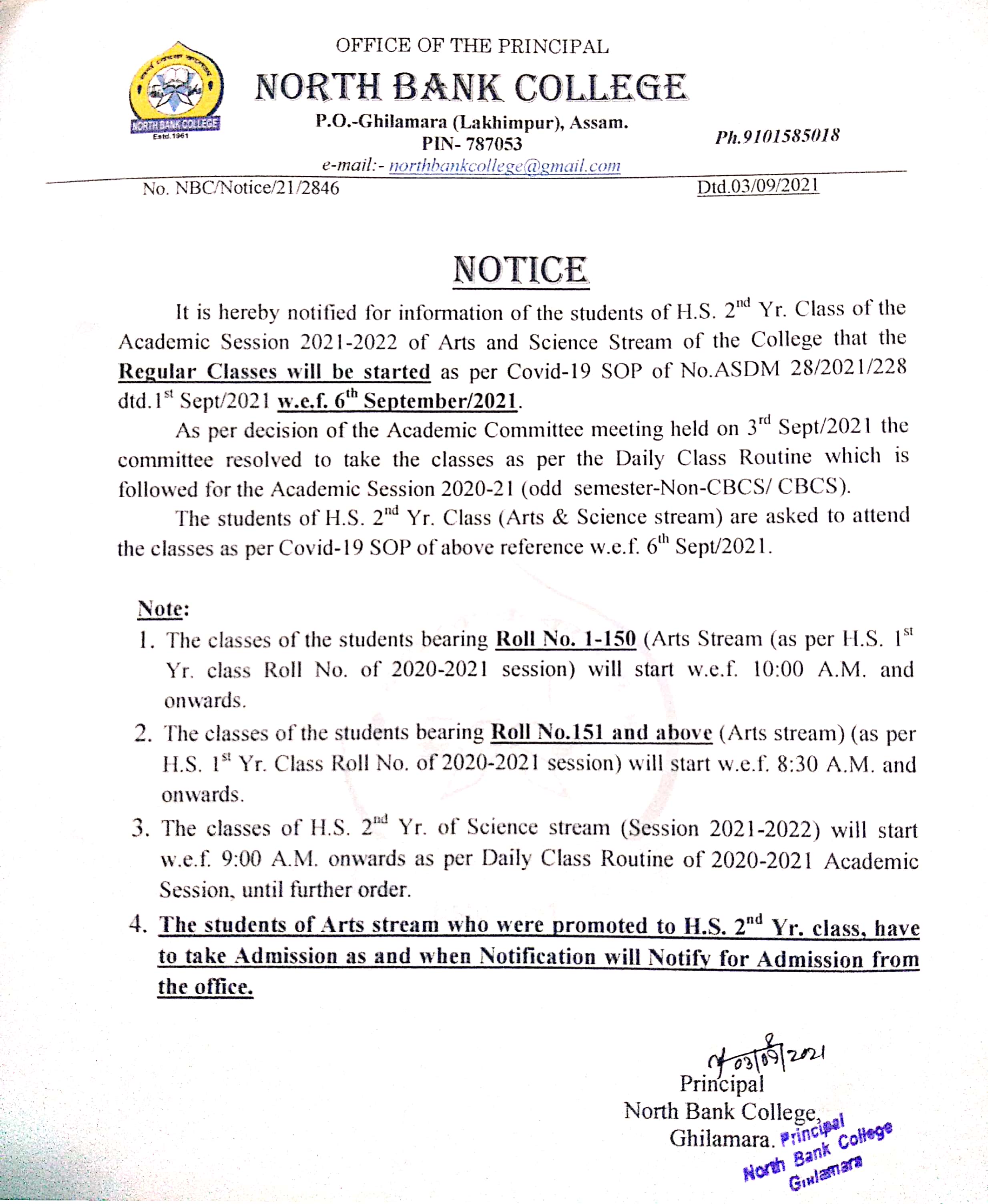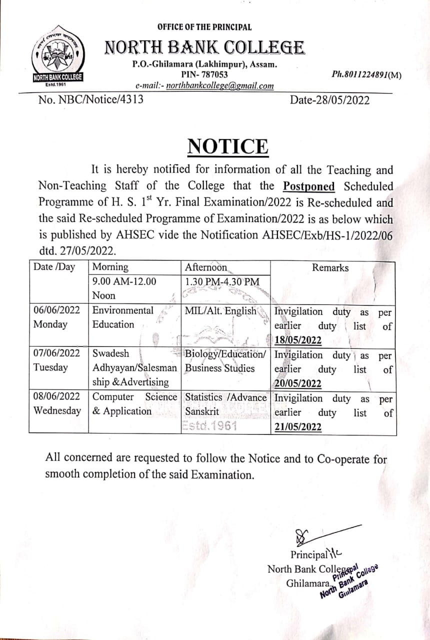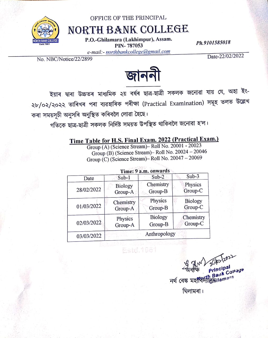 Regarding Practical Exam. of HS 2nd Yr. Final Exam.-2021