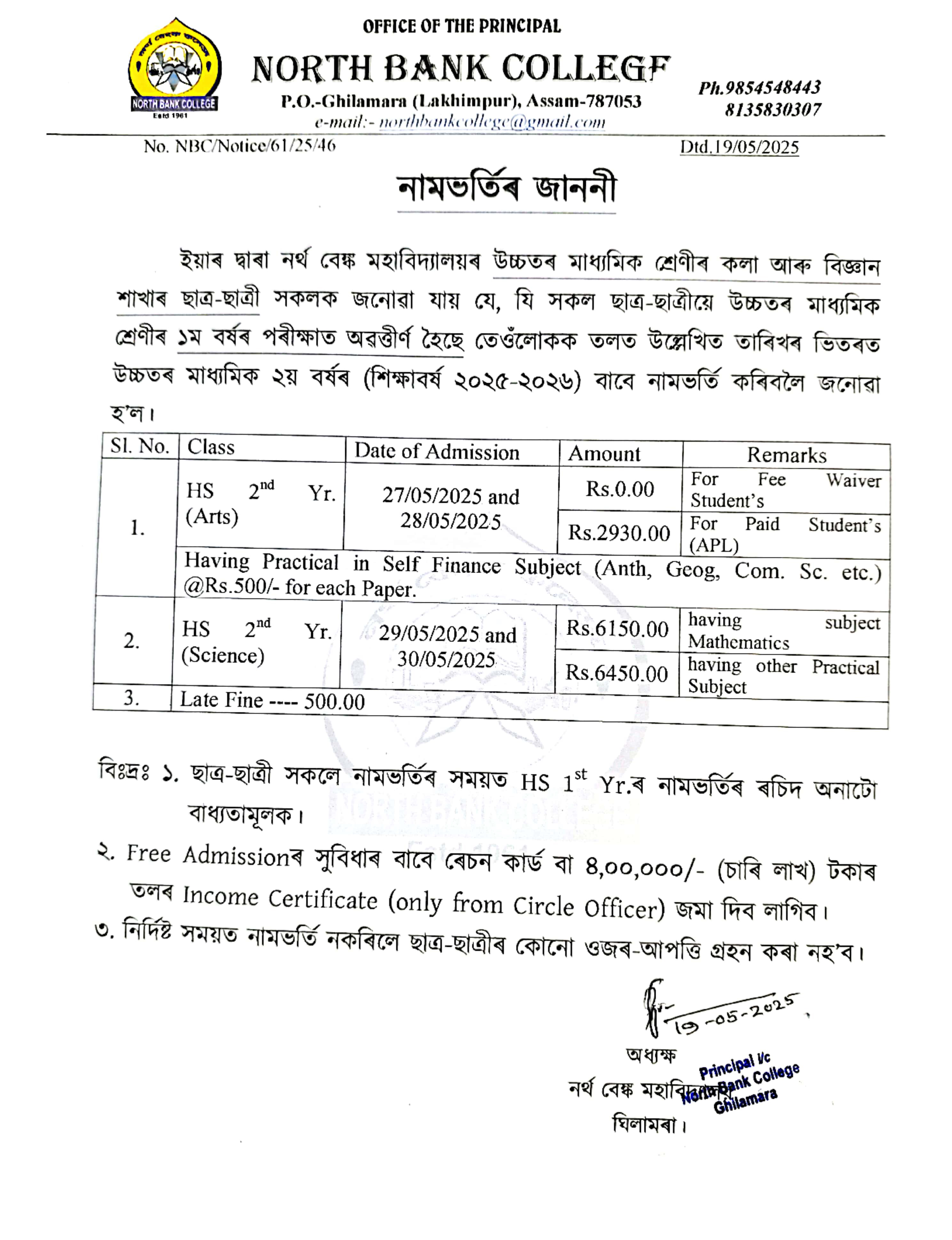 HS 2nd Yr Exam Form Fill Up Notice-2025