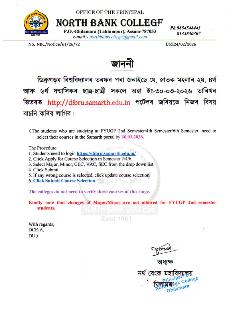 Course Selection Notice for 2nd, 4th and 6th Sem (FYUGP)-2026