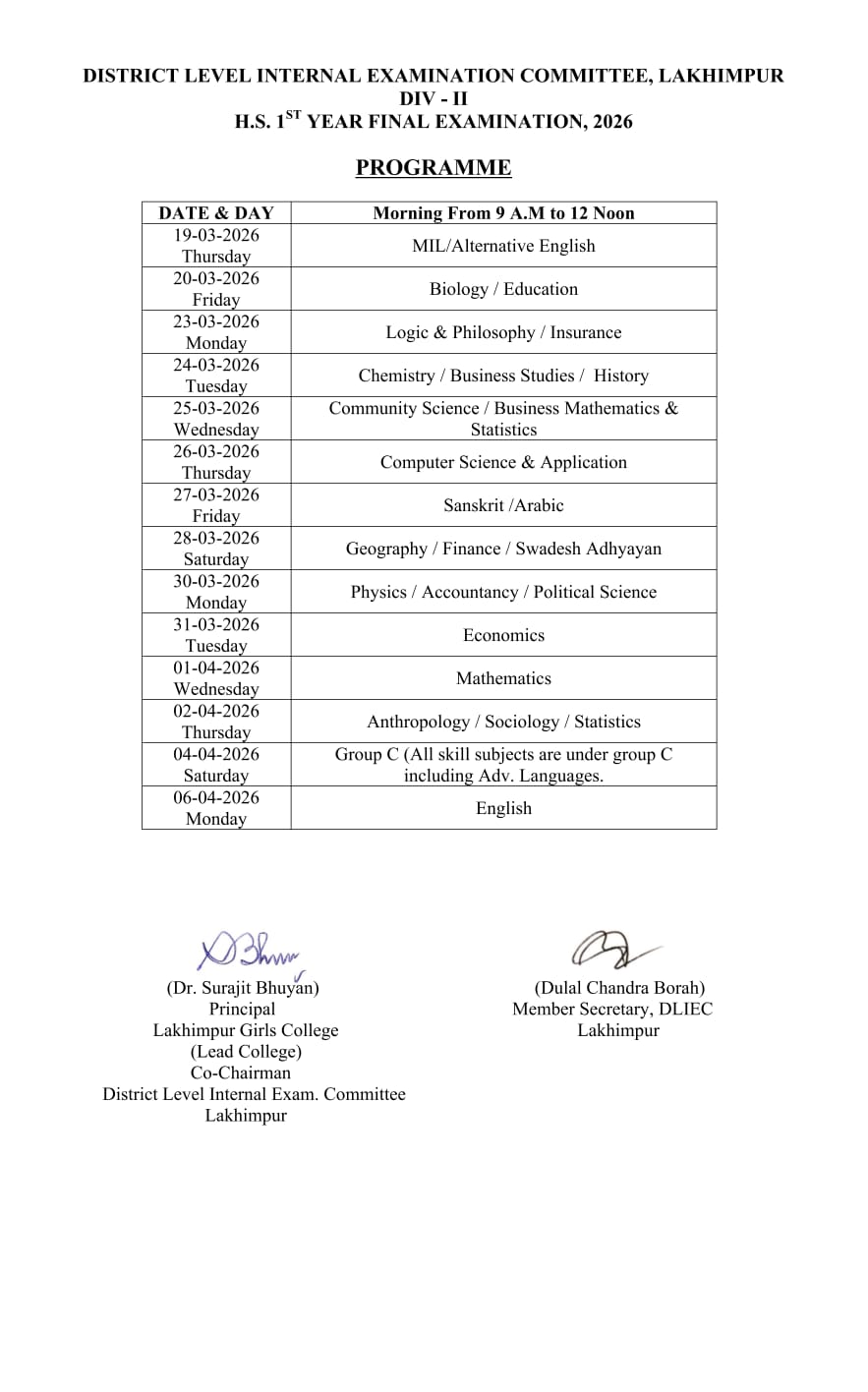 HS 1st Year Exam Programme-2026