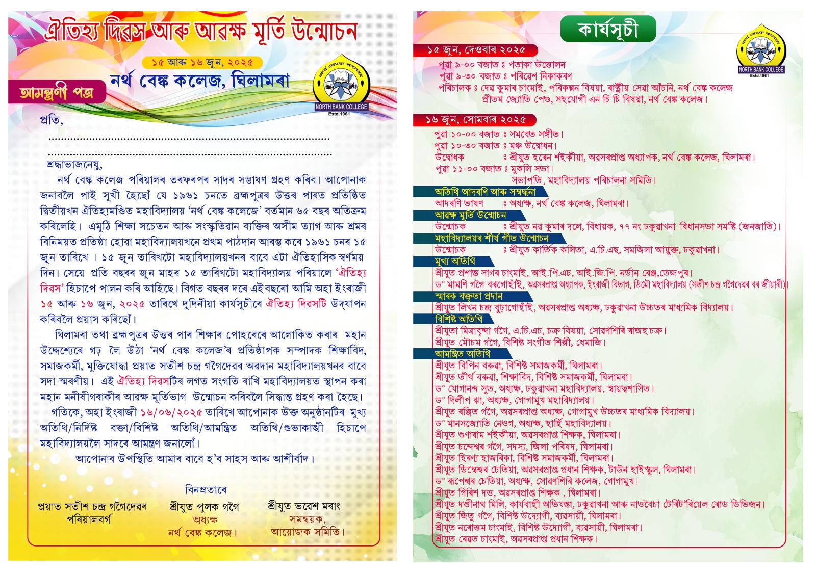 Celebration of Oitijya Divas and Late Satish Ch. Gogoi Statue Inauguration